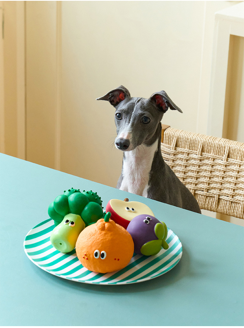 제제 사과 산자나무 브로콜리 오렌지 강아지 씹는 장난감 이갈이 방지 내구성 소리나는 장난감 소형견용스토어 가기