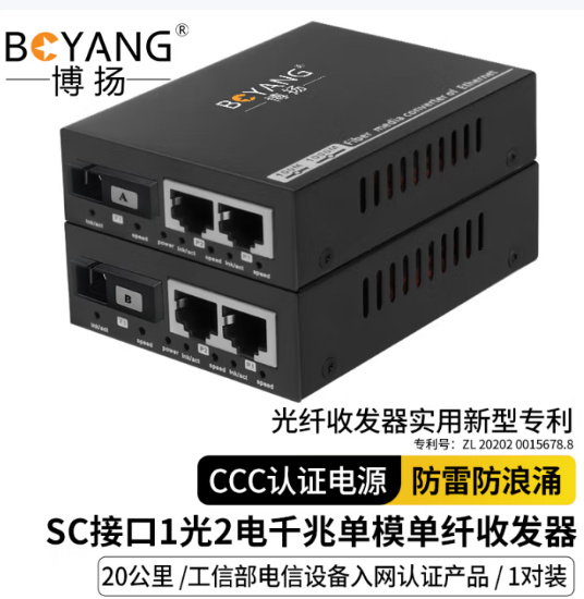 Boyang 기가비트 1 광 2 전기 단일 모드 단일 광섬유 광 트랜시버 SC 인터페이스 1 쌍 BY-VG1021A/B-20KM