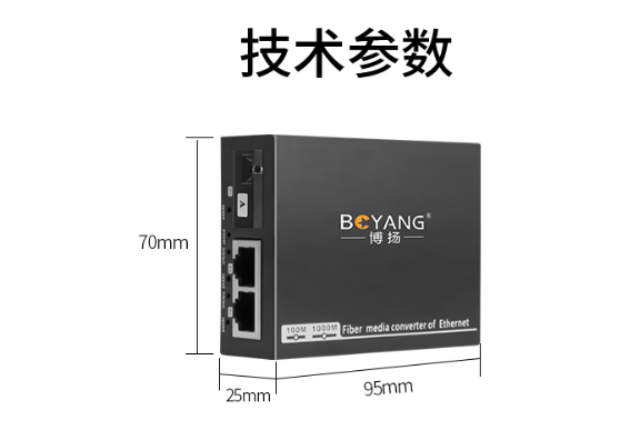 博扬(BOYANG)千兆1光2电单模单纤光纤收发器 隔离光电转换器 SC接口1对 BY-VG1021A/B-20KM