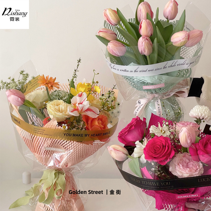 Ins 스타일 간단한 영어 셀로판 두꺼운 방진 투명 Opp 필름 한국식 꽃 번들 종이 E18스토어 가기
