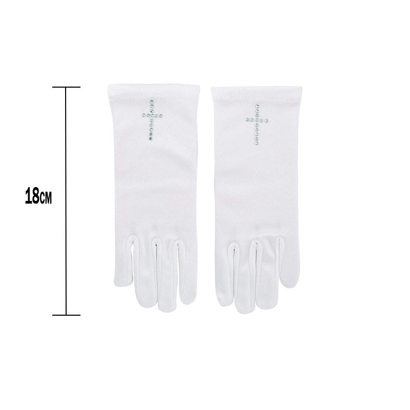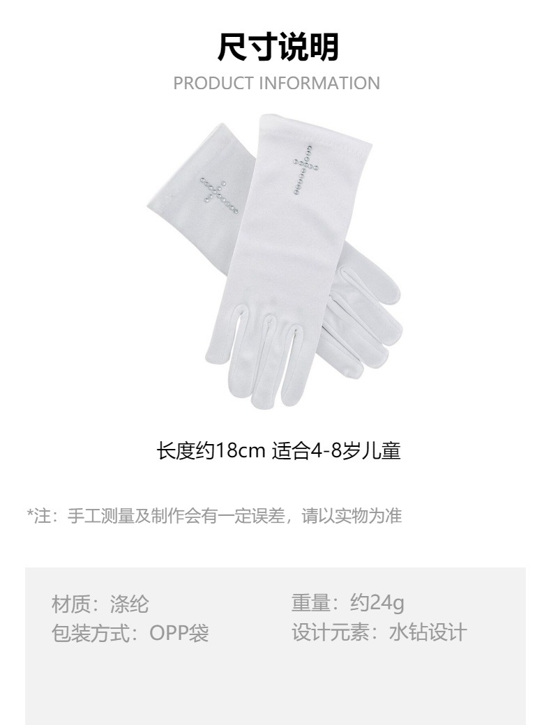 크로스보더 아동용 새틴 성찬식 장갑 십자가 모양 라인스톤 다이아몬드 화이트 장갑 아동 의류 액세서리