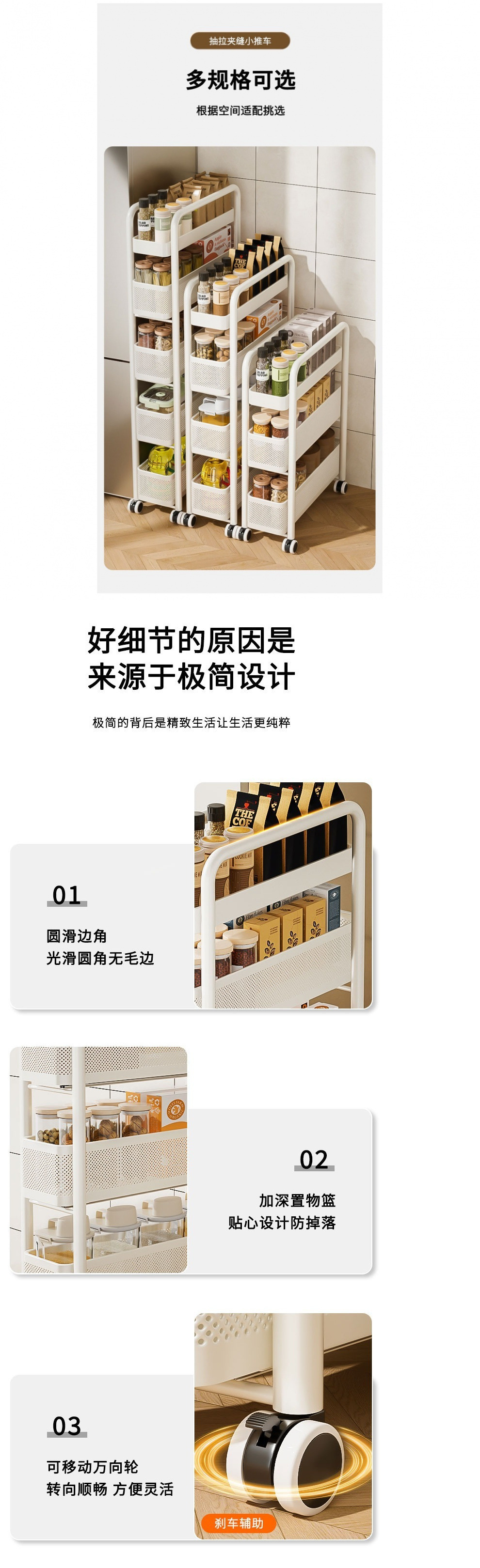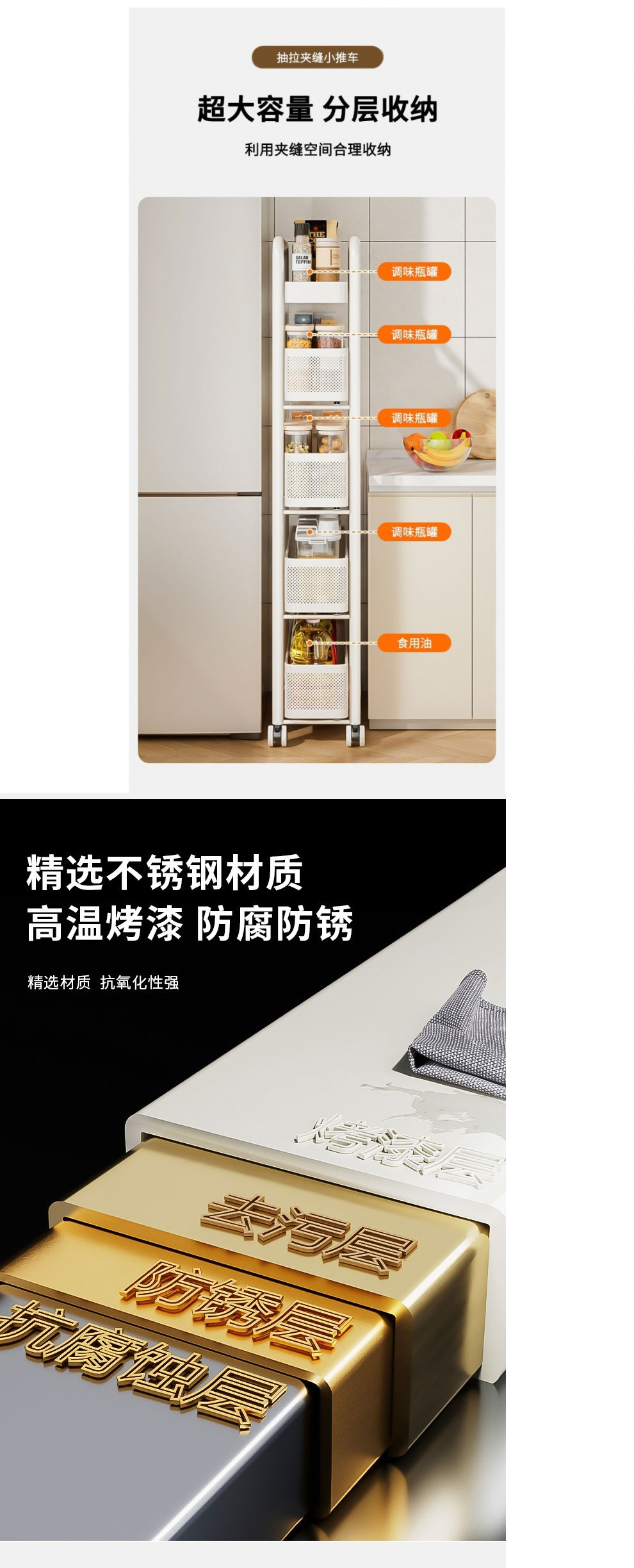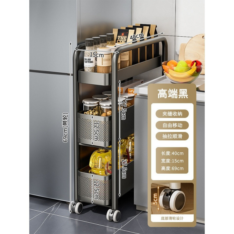 스테인레스 스틸 주방 틈새 수납 선반 냉장고 측면 풀 아웃 캐비닛 욕실 트롤리 매우 좁은 틈새 수납 캐비닛