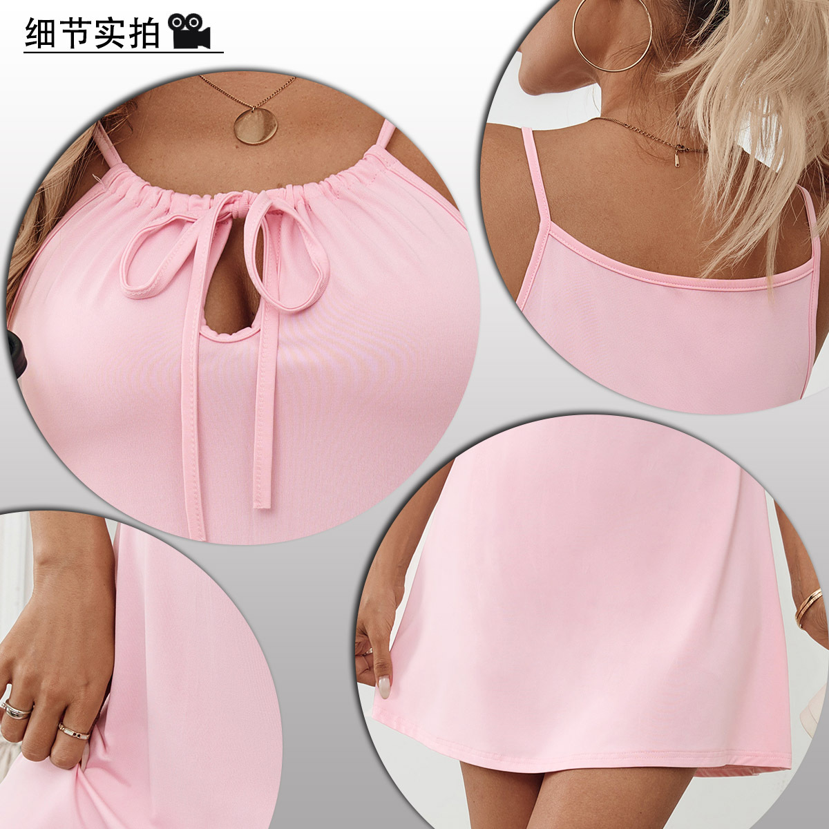 국경 간 2025 새로운 슬링 잠옷 여성 홈웨어 캐주얼하고 편안한 가슴 스트랩 조절 가능한 잠옷 드레스스토어 가기