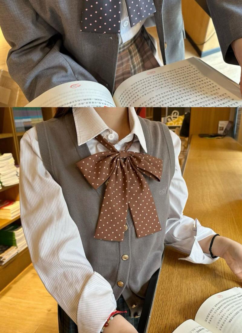 오리지널 폴카 도트 롱 핸들 칼라 꽃 소녀 나비 넥타이 귀여운 학생 소녀 대학 스타일 jk 유니폼 넥타이 액세서리스토어 가기