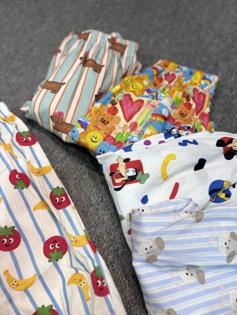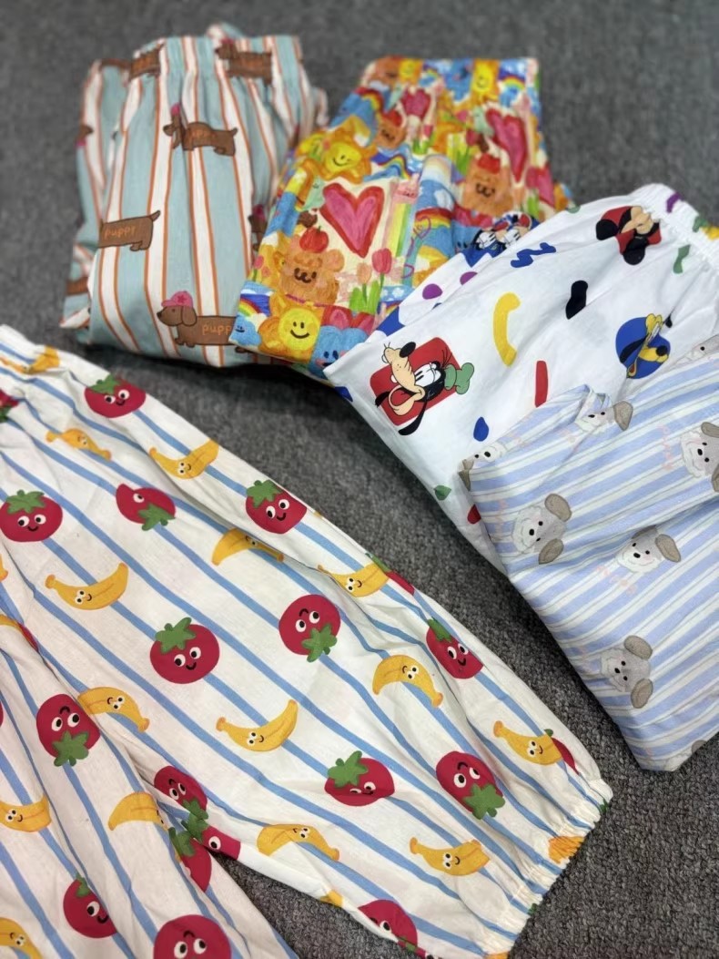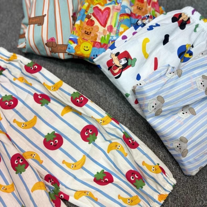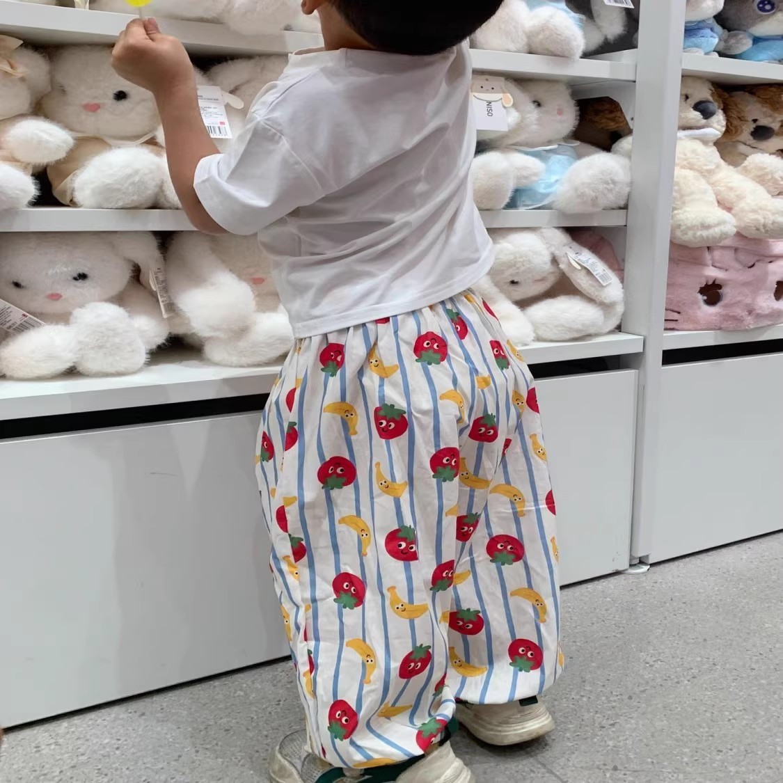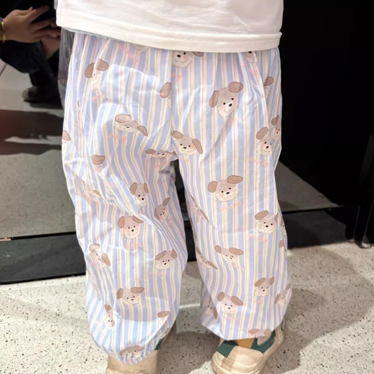여름철 어린이들을 위한 다양한 귀여운 만화 프린트 바지, 남아 및 여아용 캐주얼 한국식 모기 방지 바지, 얇은스토어 가기