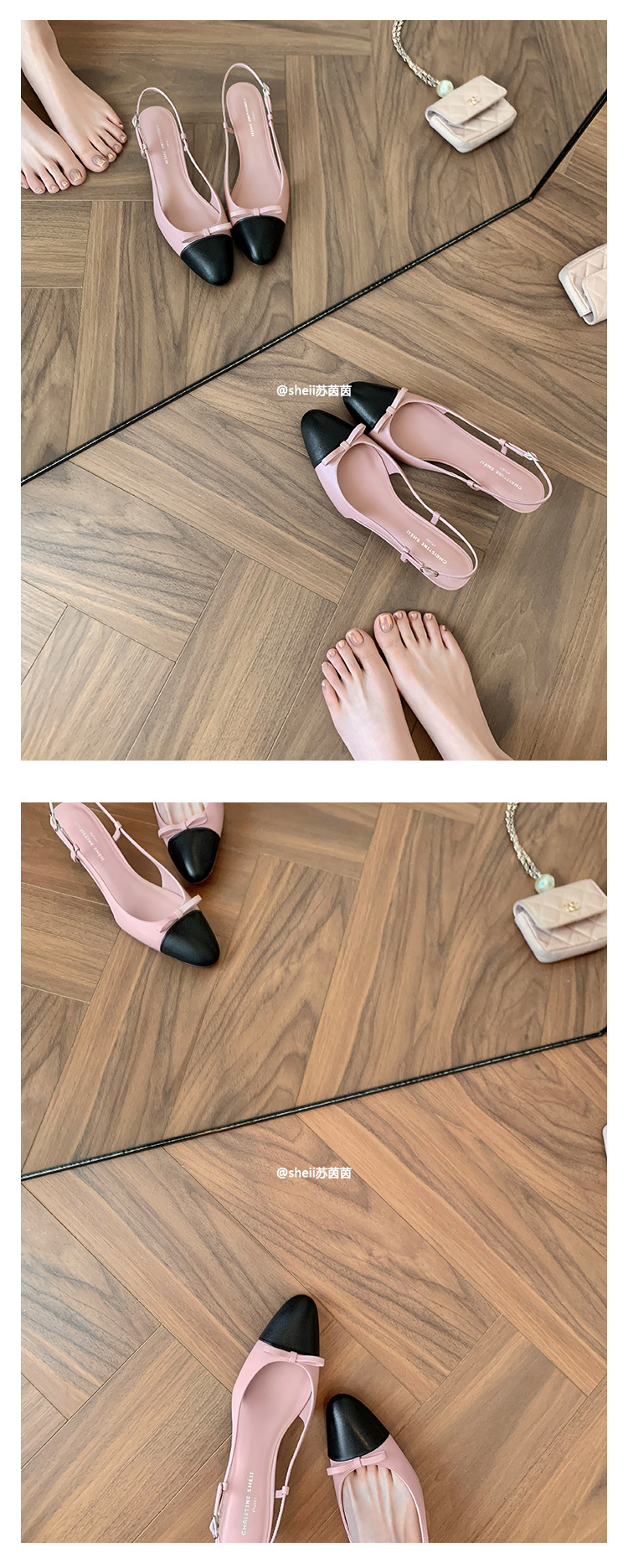 [수 Yinyin] 프랑스 애인 ~ 가죽 활 색상 매칭 빈 하이힐 바오터우 샌들 여성용 통근 ol