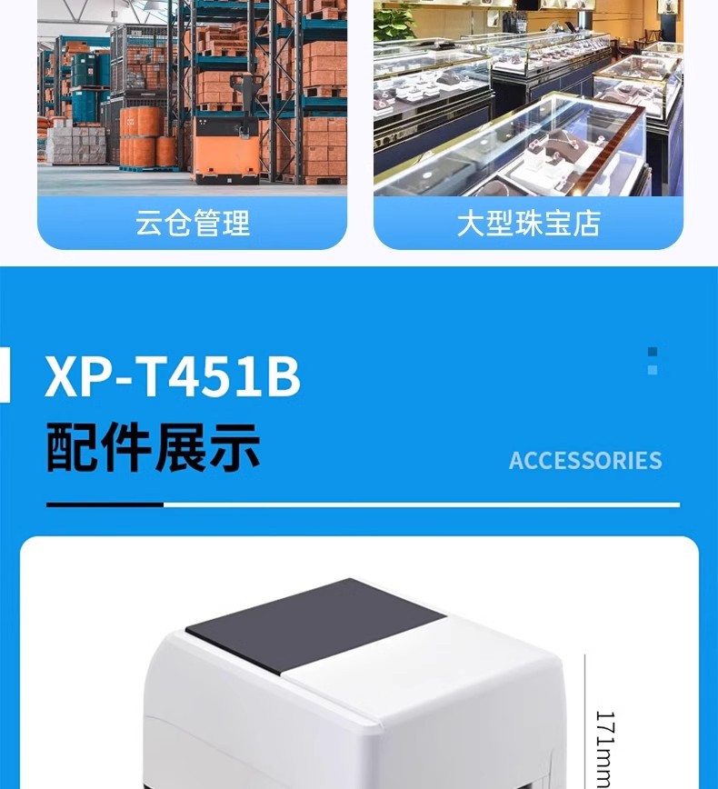 Xinye XP-T451B 라벨 의류 태그 열전달 송장 라벨 구리 도금 실버 바코드 리본 클라우드 프린터스토어 가기