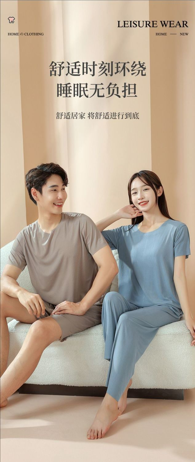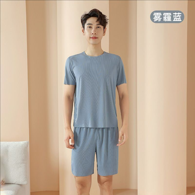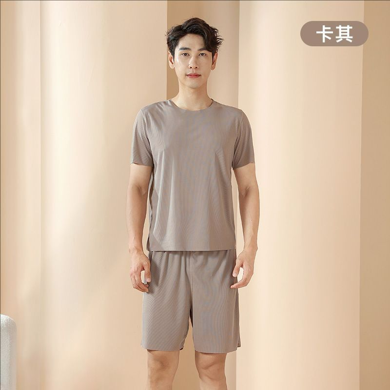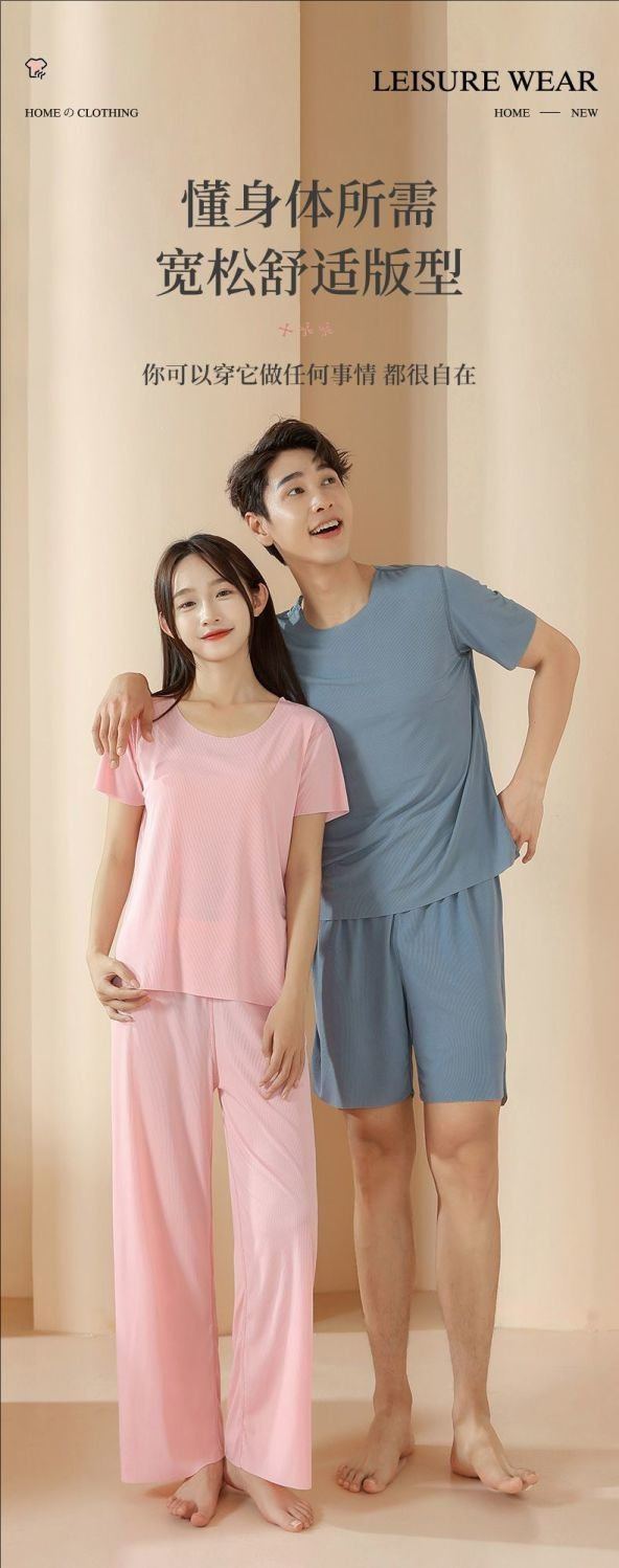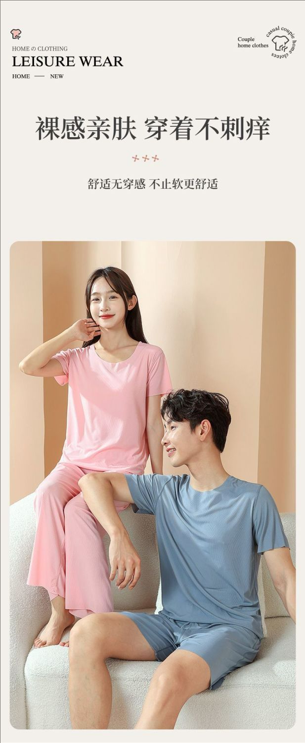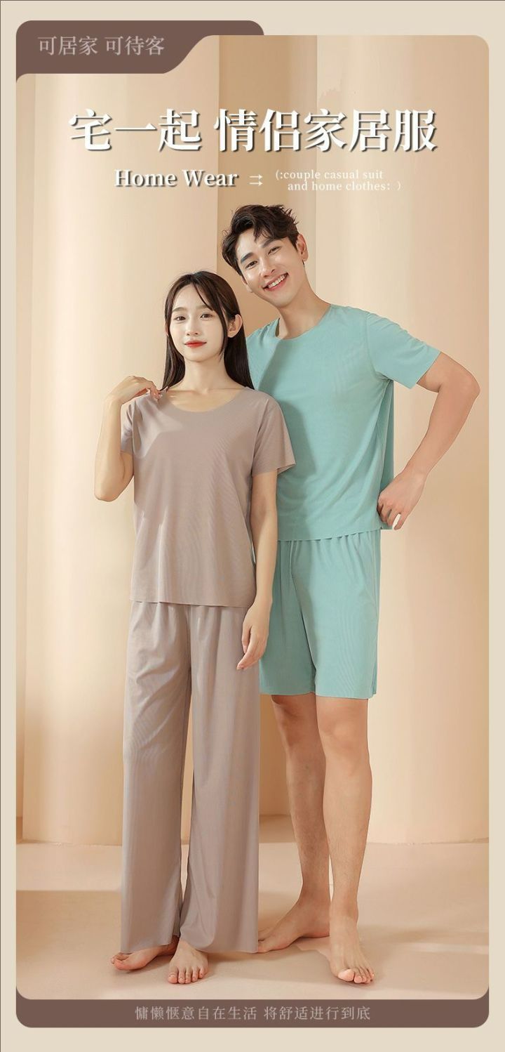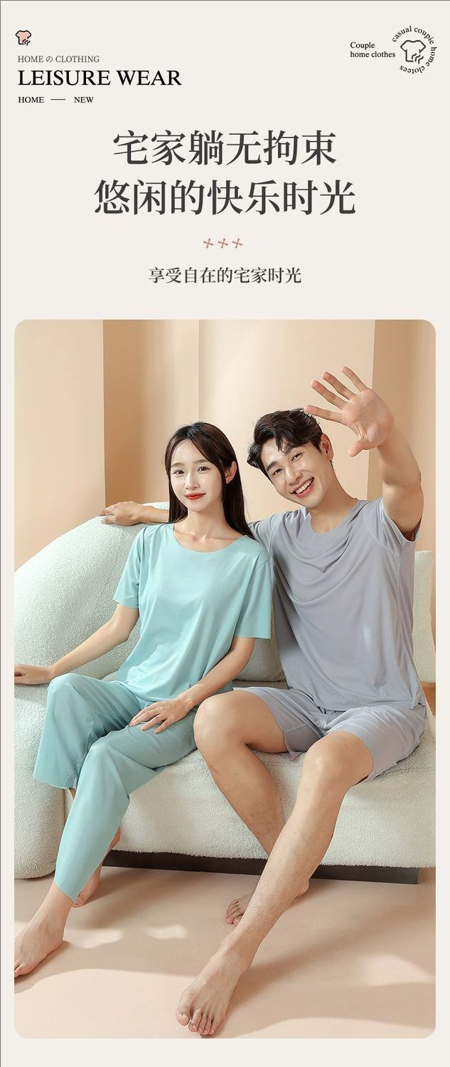 2025 트렌디 남성 라운드 넥 반팔 파자마 세트 여름 반바지 얇은 심리스 아이스 실크 홈웨어 여성 고급스토어 가기