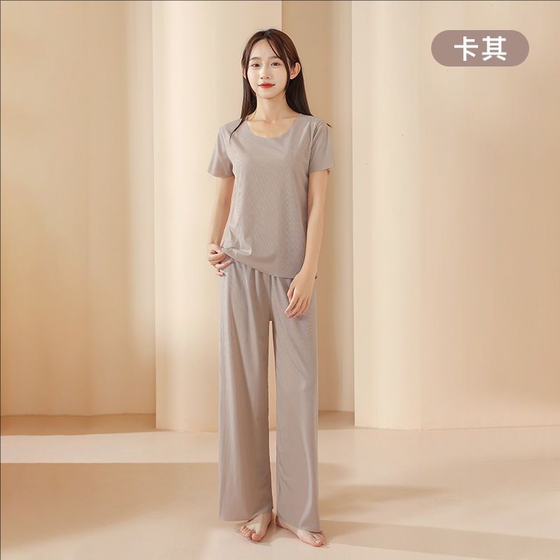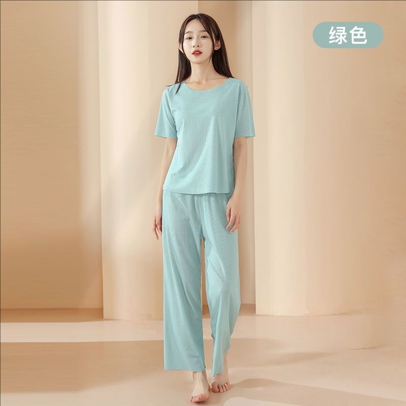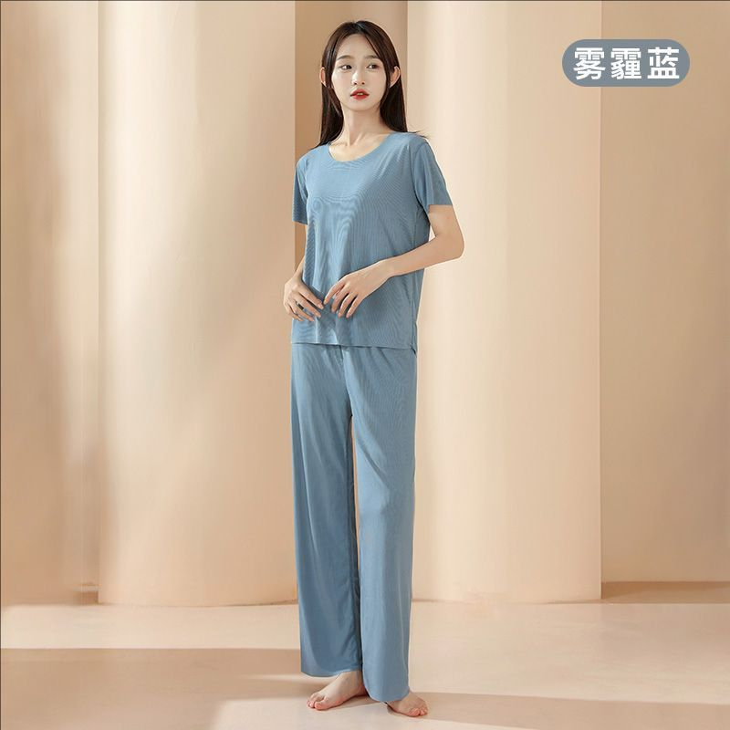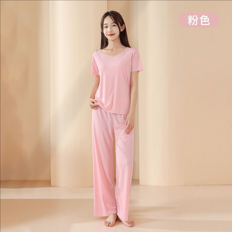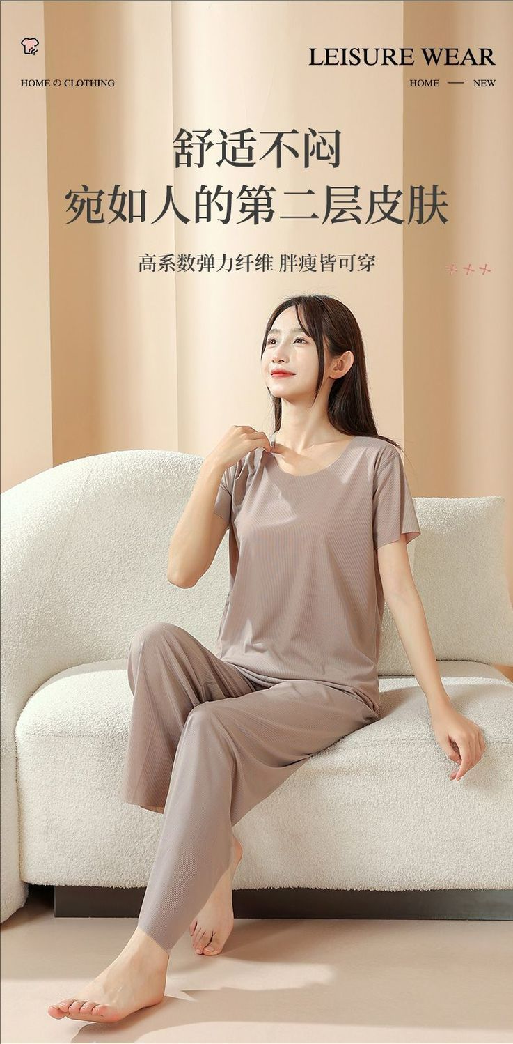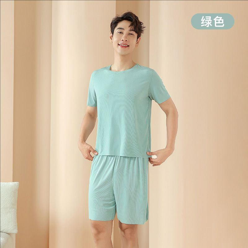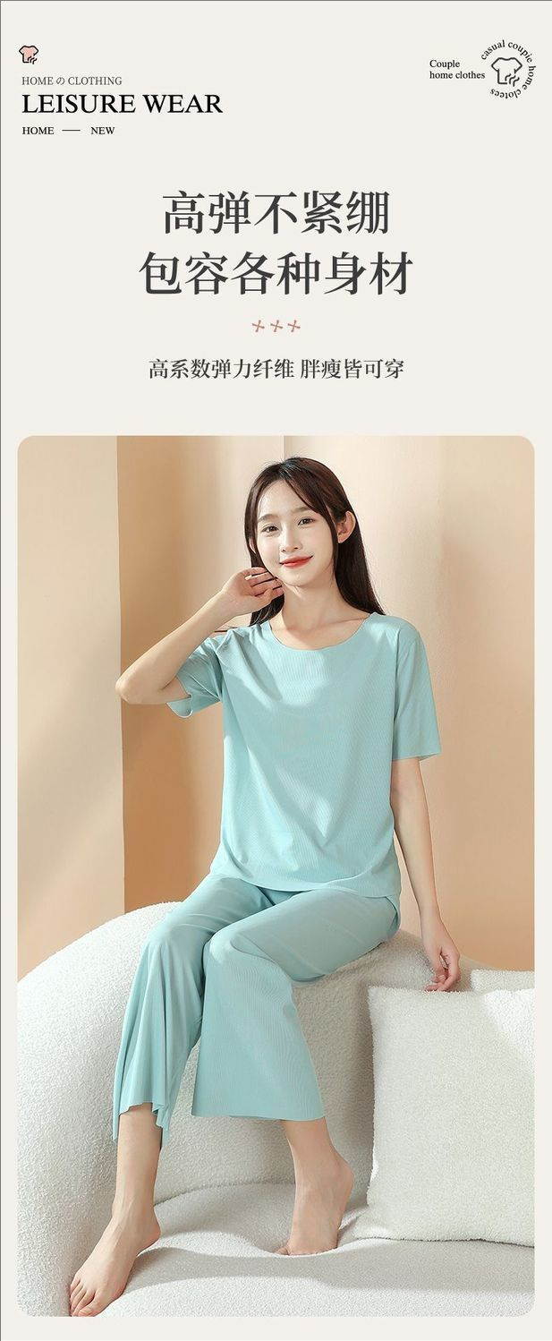2025 트렌디 남성 라운드 넥 반팔 파자마 세트 여름 반바지 얇은 심리스 아이스 실크 홈웨어 여성 고급스토어 가기