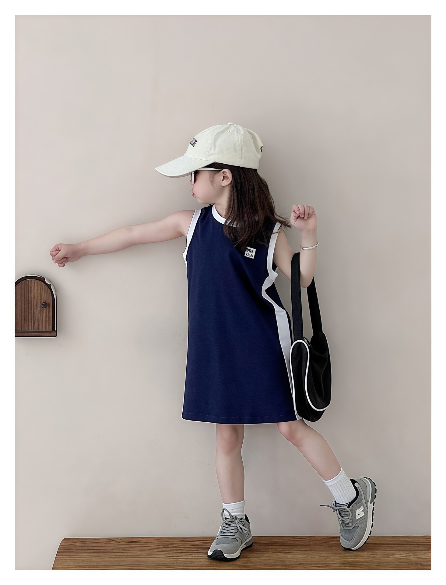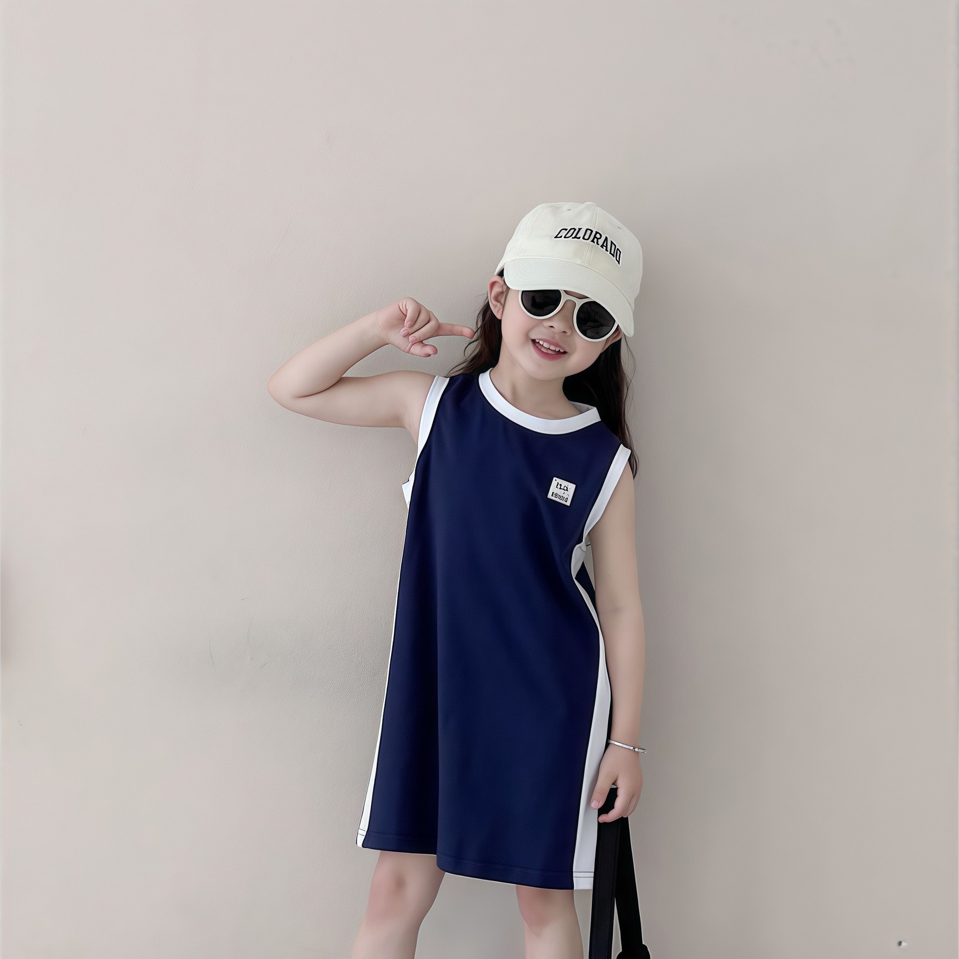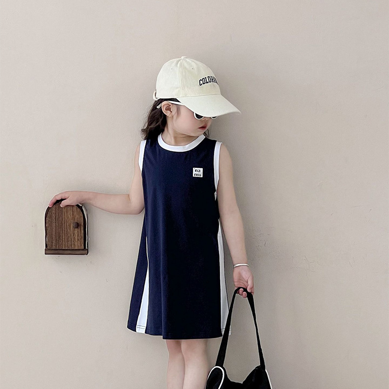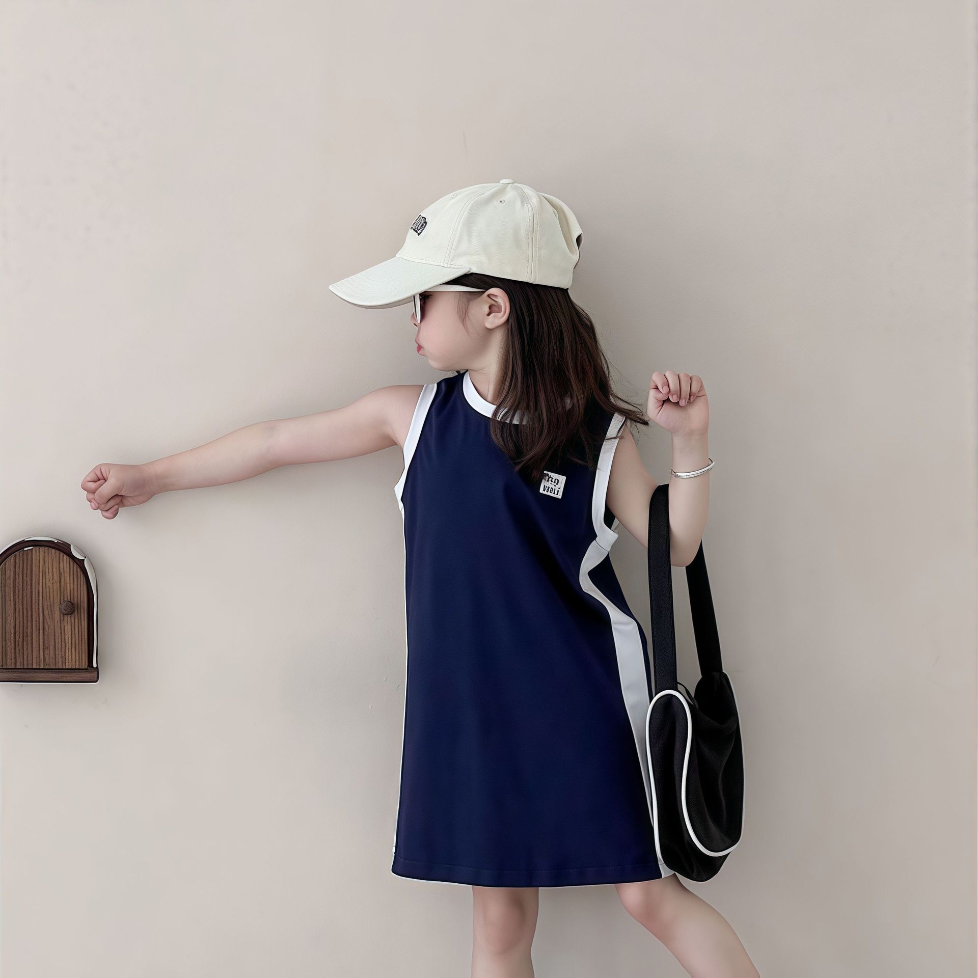 어린 소녀와 아기를 위한 여름 드레스, 아동 스포츠 스타일 스커트, 여름 드레스, 중간 길이의 한국식 컬러 블록 조끼 드레스