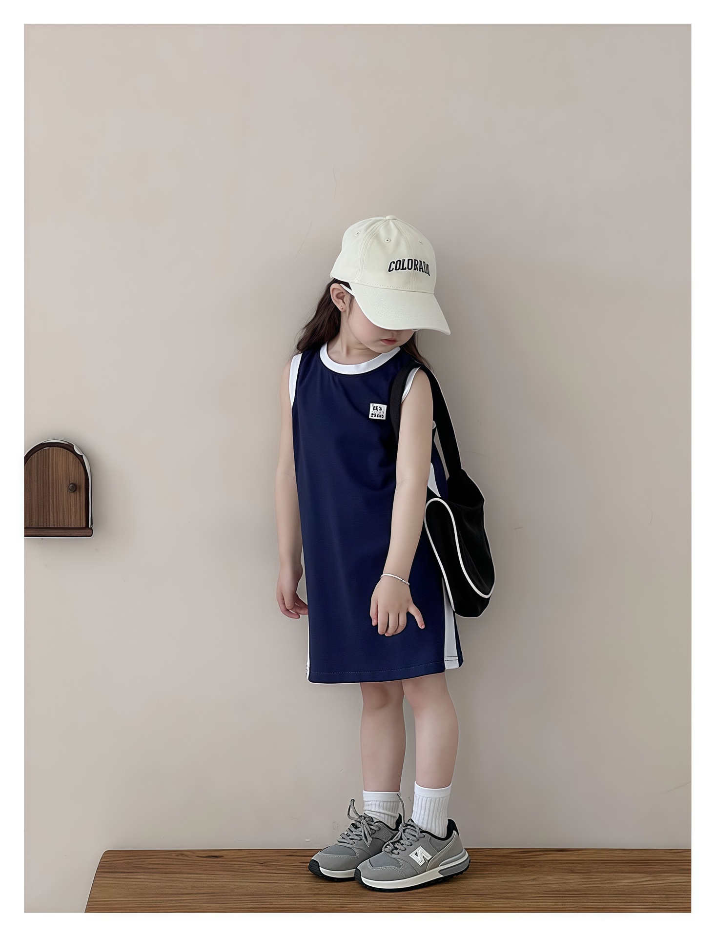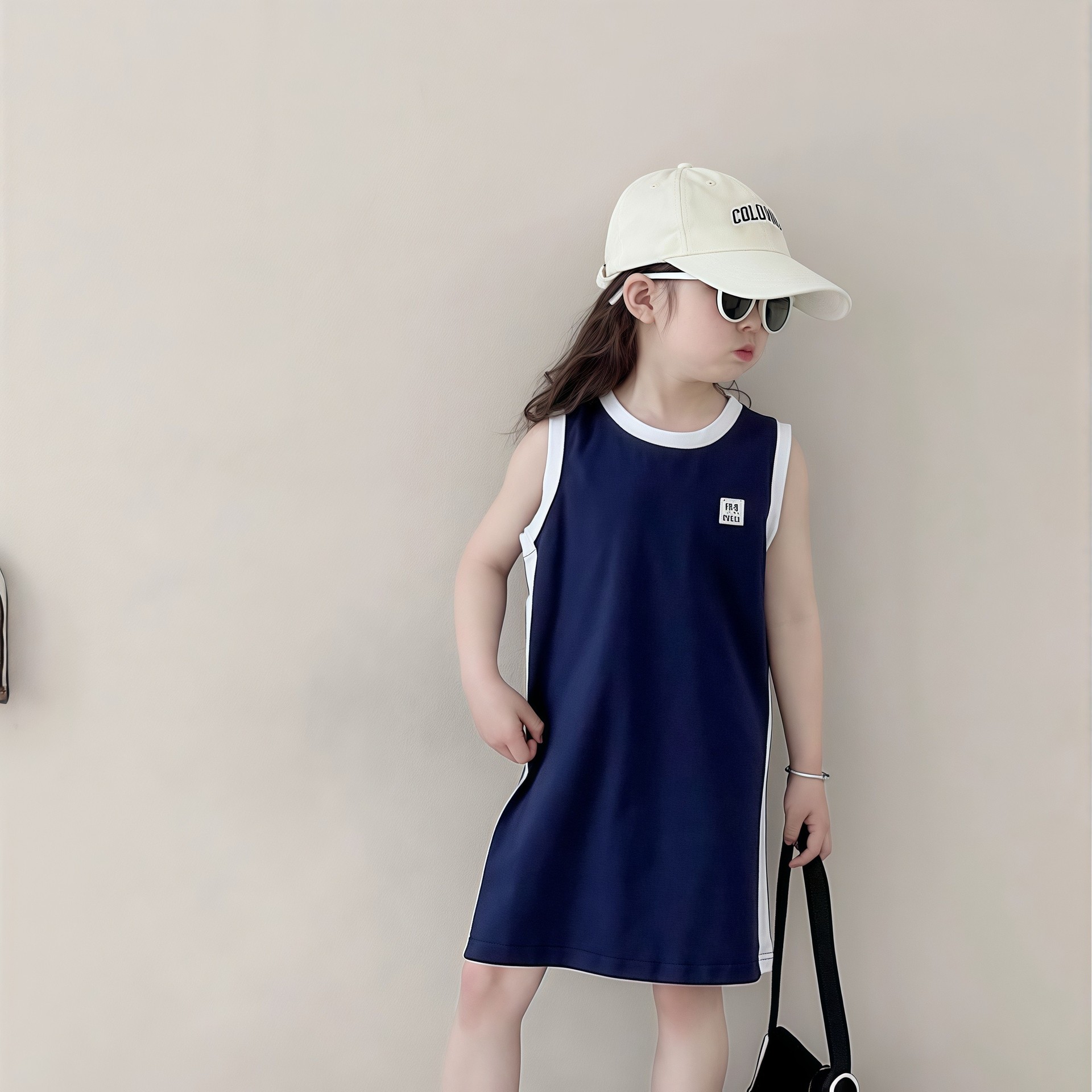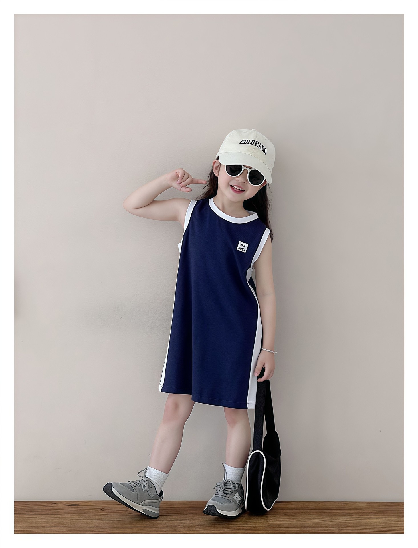 어린 소녀와 아기를 위한 여름 드레스, 아동 스포츠 스타일 스커트, 여름 드레스, 중간 길이의 한국식 컬러 블록 조끼 드레스