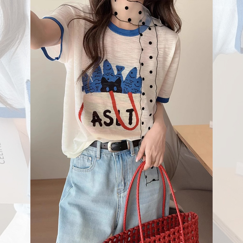 블루 만화 여성 여름 새로운 반팔 티셔츠 한국 스타일 슈퍼 멋진 독특한 아름다운 탑 트렌디