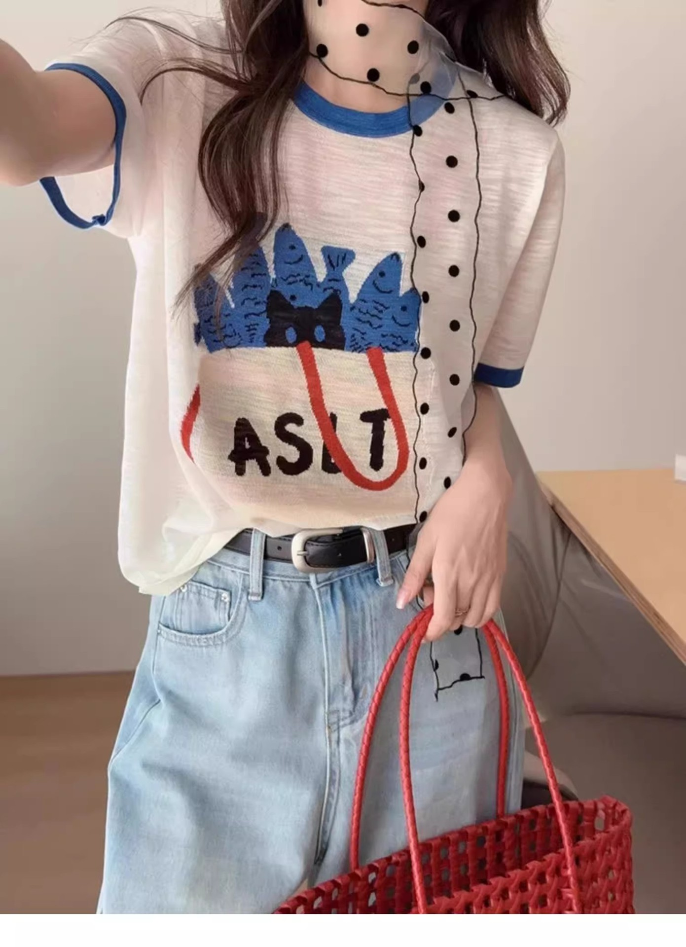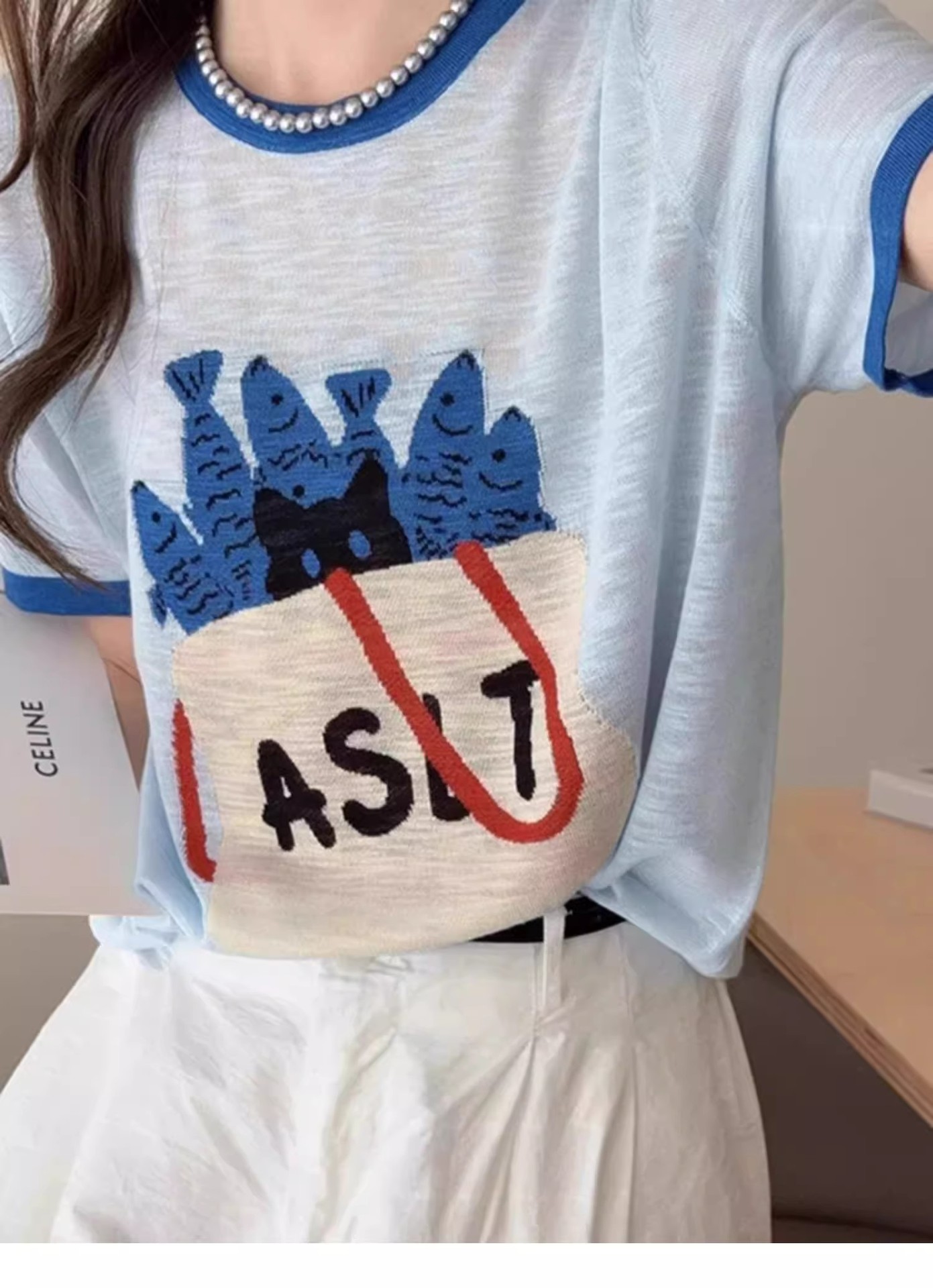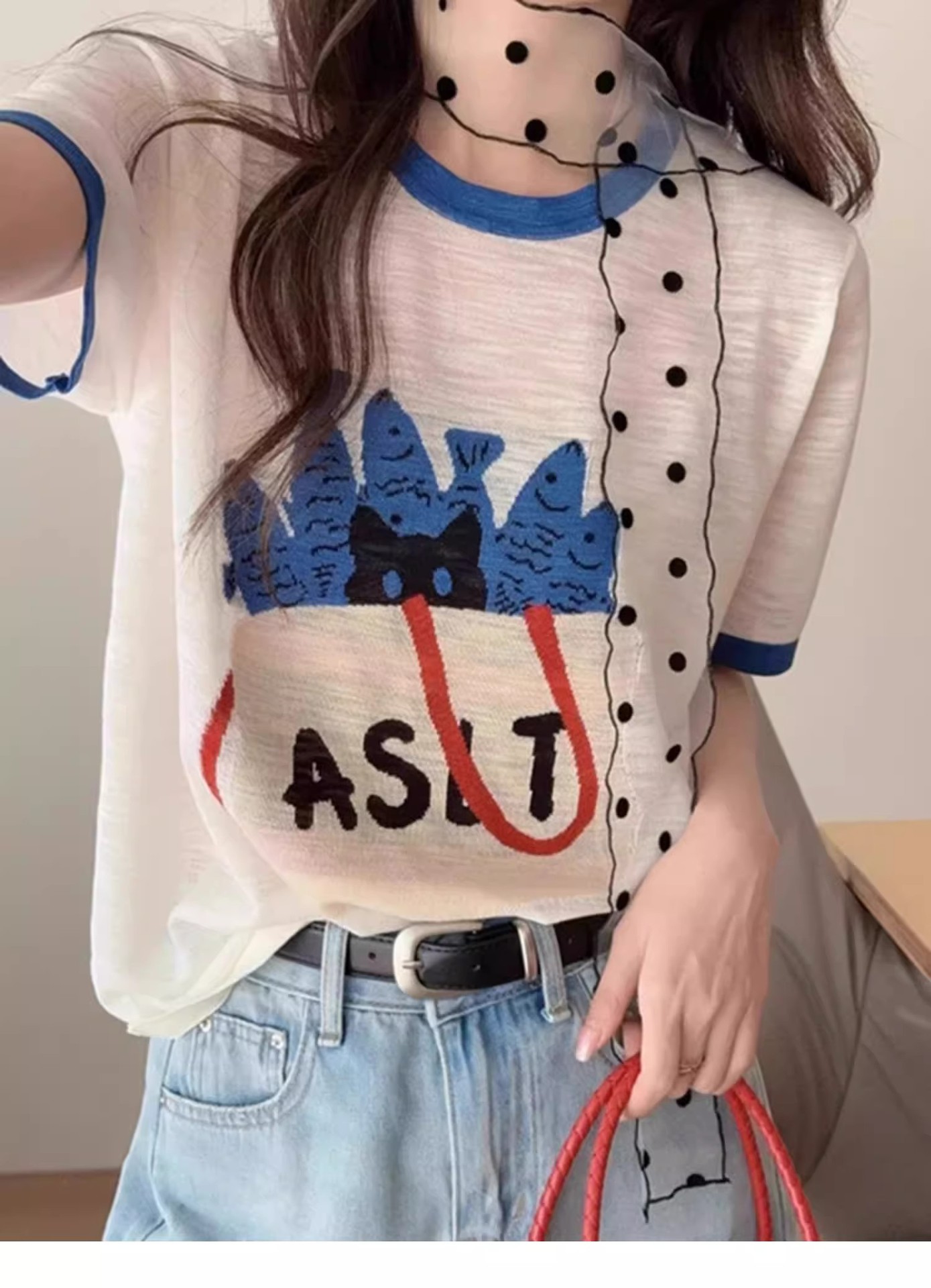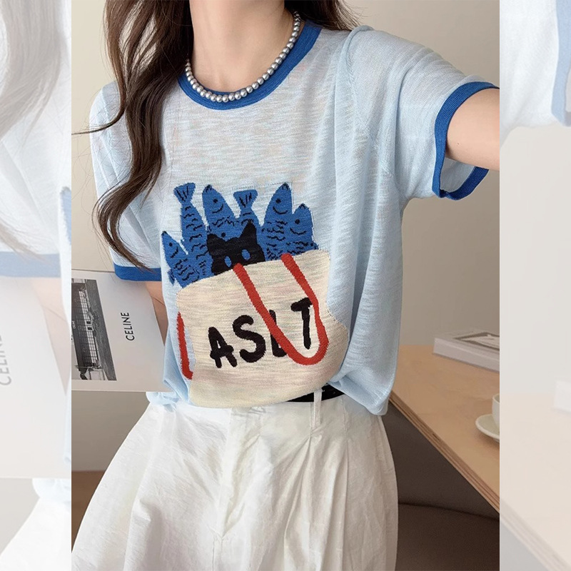 블루 만화 여성 여름 새로운 반팔 티셔츠 한국 스타일 슈퍼 멋진 독특한 아름다운 탑 트렌디스토어 가기
