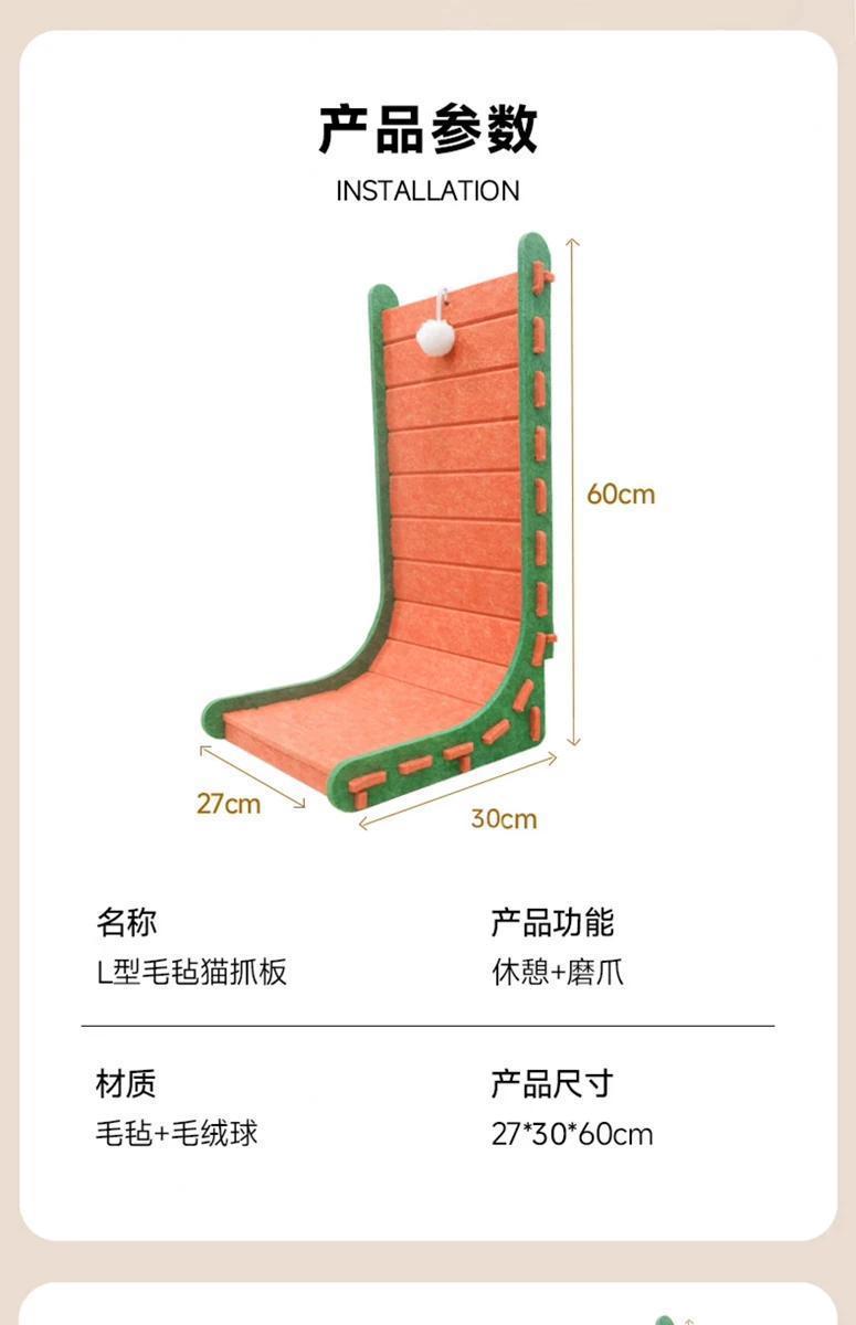 고양이 스크래치 보드, 내마모성, 벽에 부착할 수 없음, 고양이 스크래치 방지 소파, 고양이 삼각형 발톱 연삭 펠트 고양이 스크래치 보드, 후난성스토어 가기