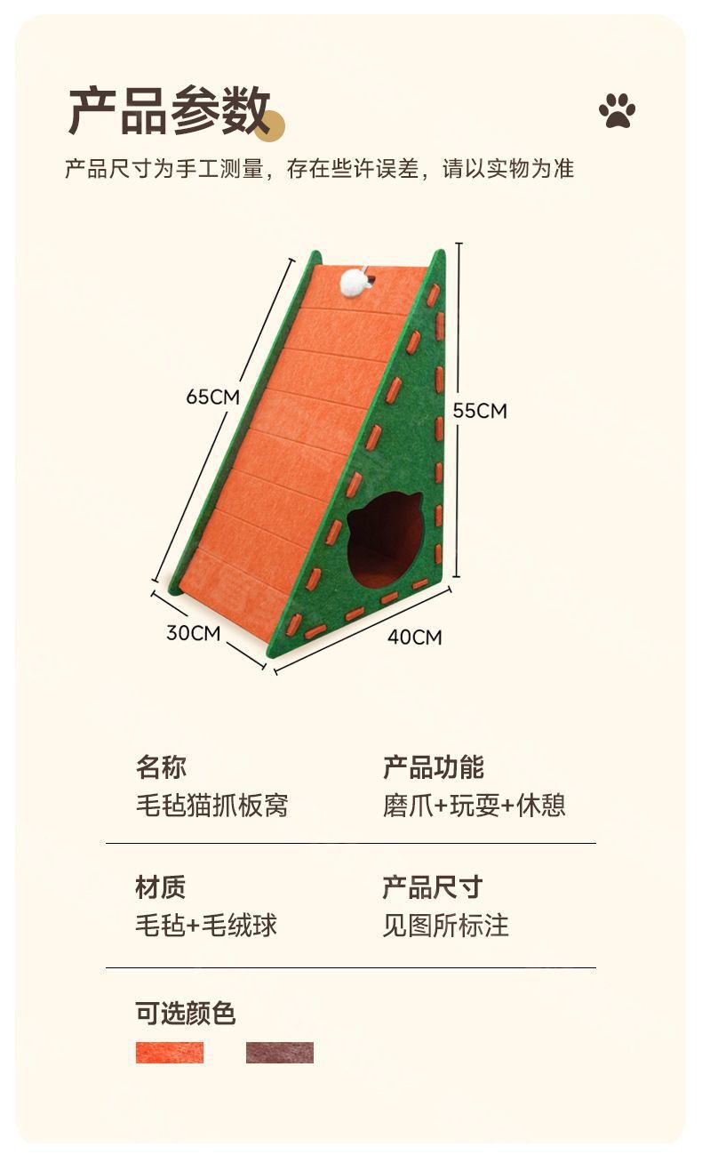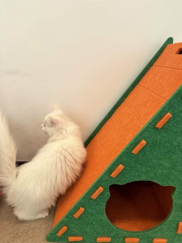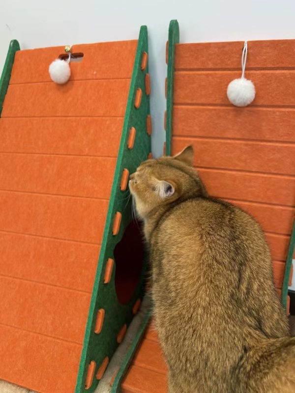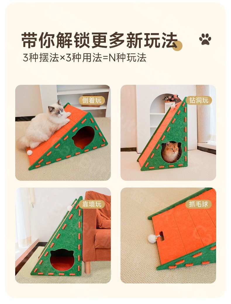 • 오렌지색 [삼각형 고양이 긁는 기둥]은 칩을 흘리지 않고 잠과 놀이를 결합합니다.