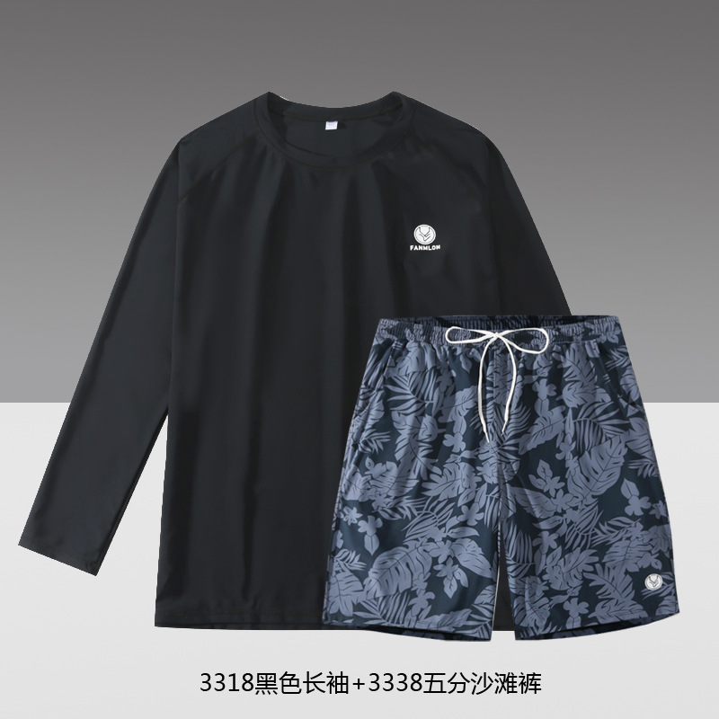 • 3318 블랙 긴팔 + 그레이 리프 비치 반바지