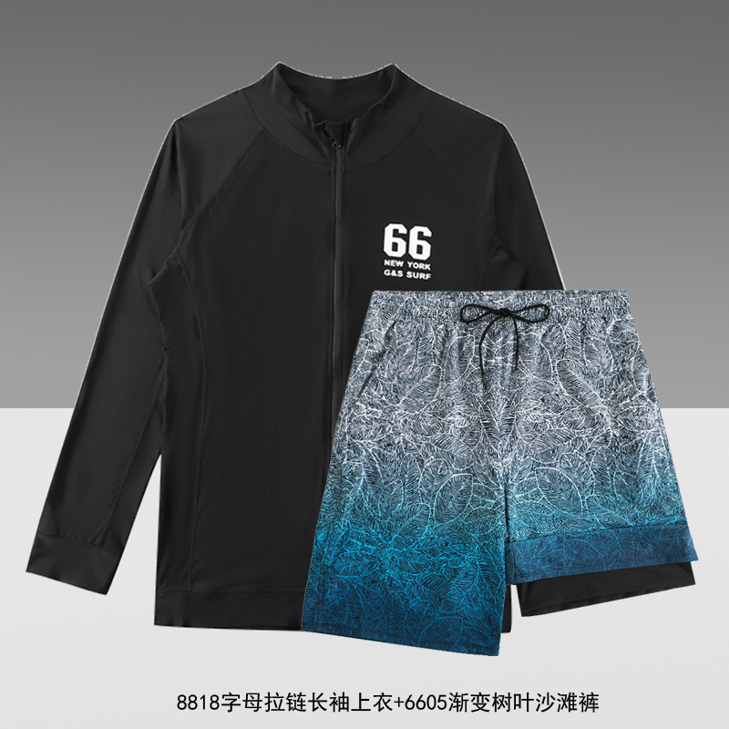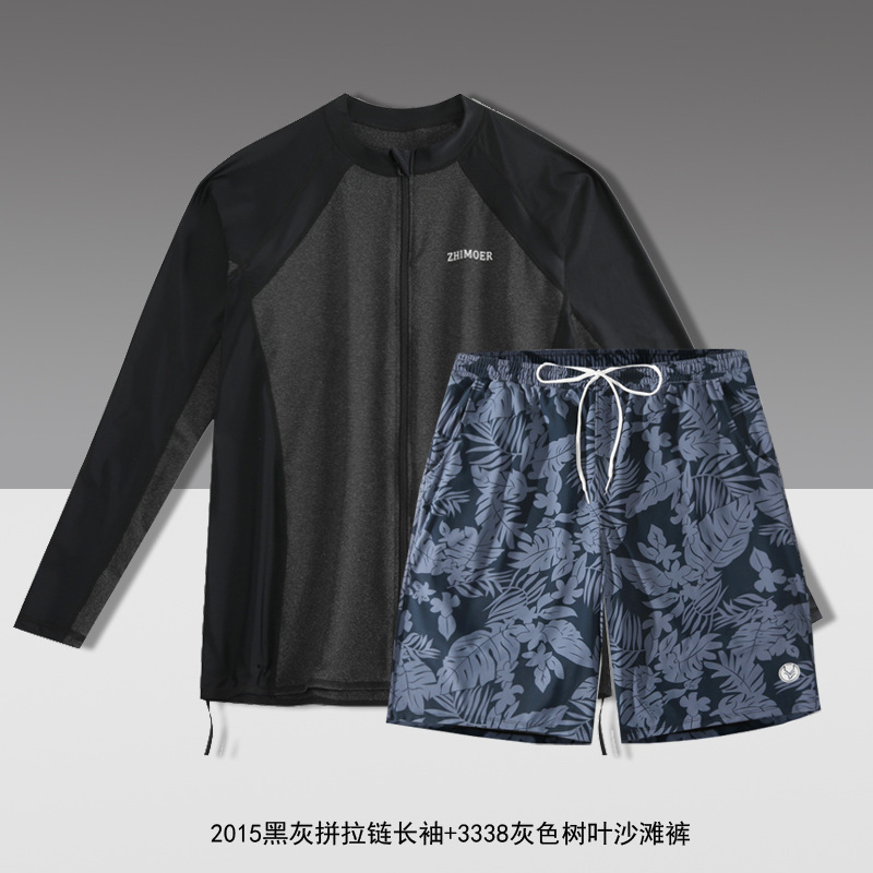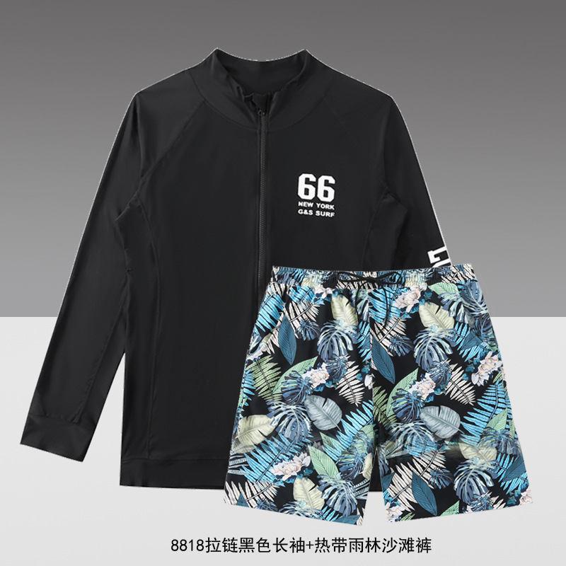 • 지퍼 블랙 긴소매 + 열대 우림 비치 반바지
