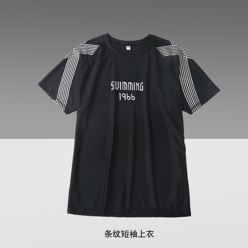 • 스트라이프 블랙 반팔 + 흑백 문자 비치 반바지