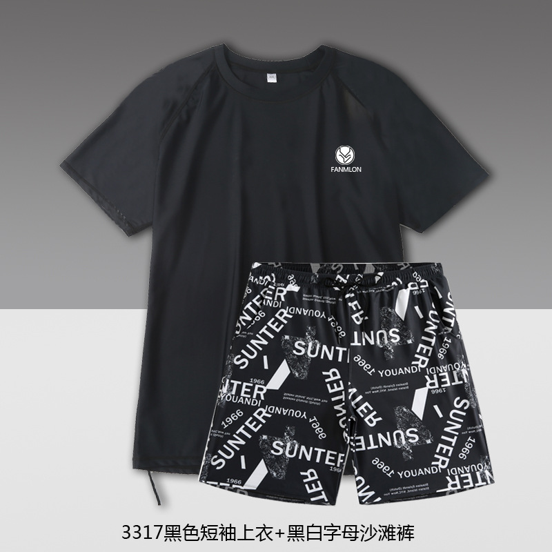 • 3317 검정색 반팔 + 흑백 문자 비치 반바지