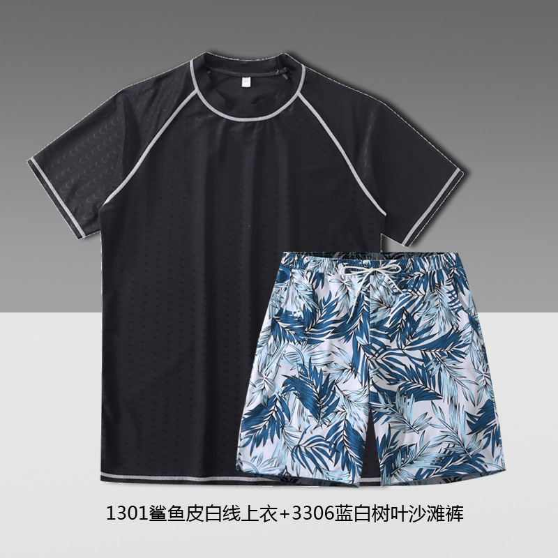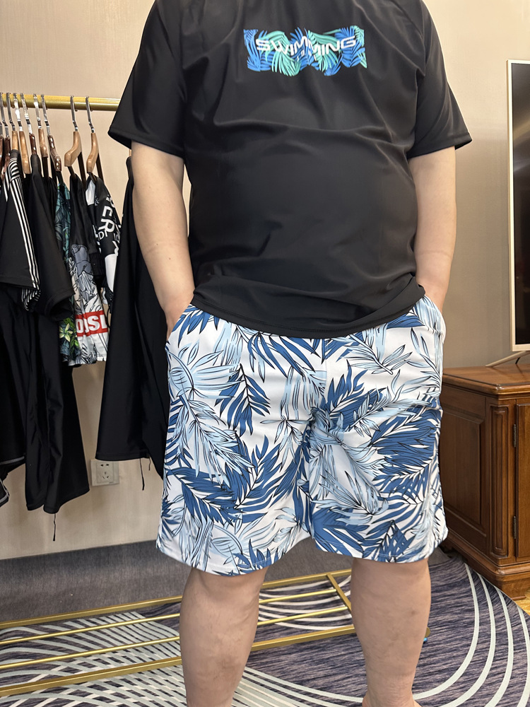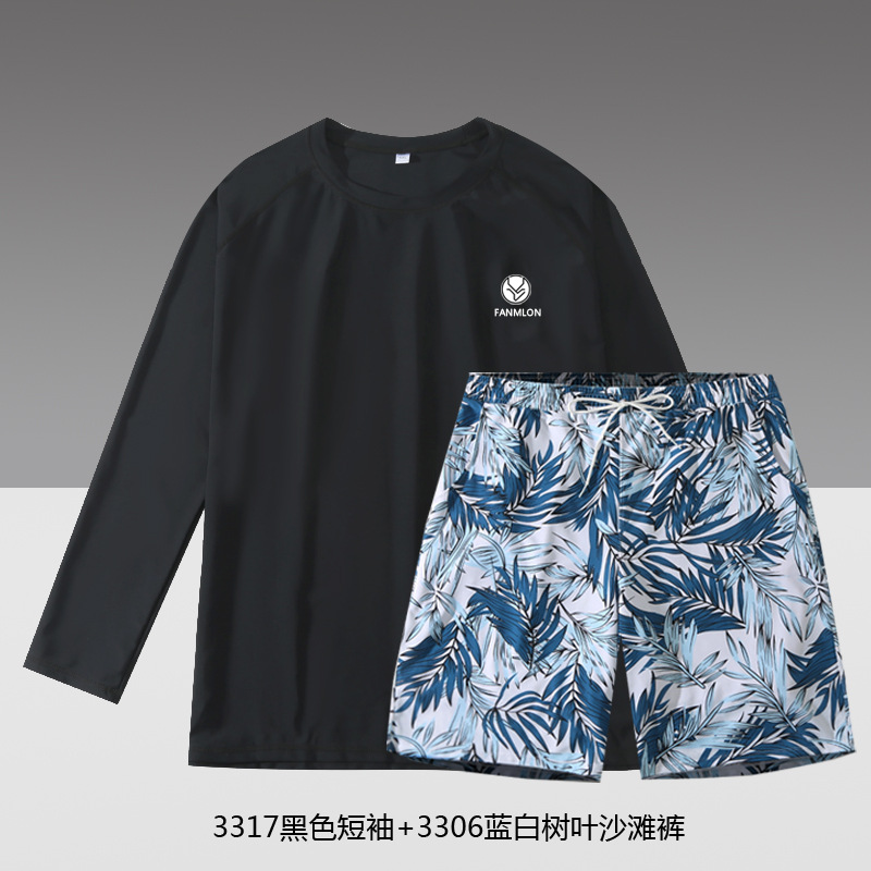 • 3318 검은색 긴팔 + 파란색과 흰색 나뭇잎 비치 반바지