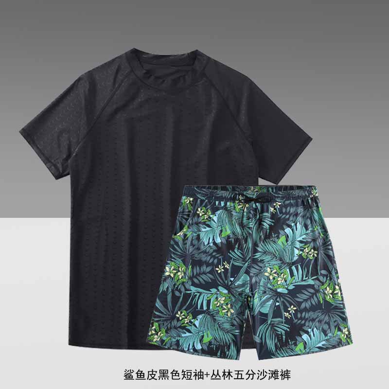 • 정글 반팔 + 퓨어 블랙 비치 반바지