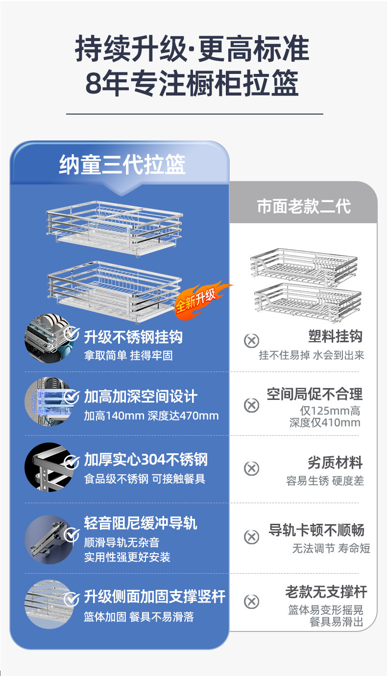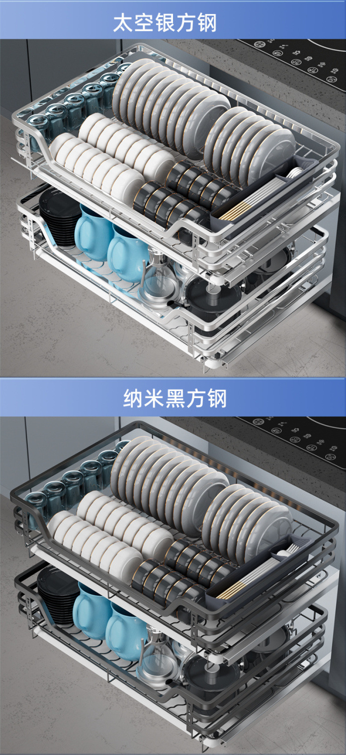 주방 바구니 캐비닛 304 스테인레스 스틸 더블 레이어 서랍 형 그릇 바구니 랙 저장 조미료 바구니 풀 아웃 식기 랙
