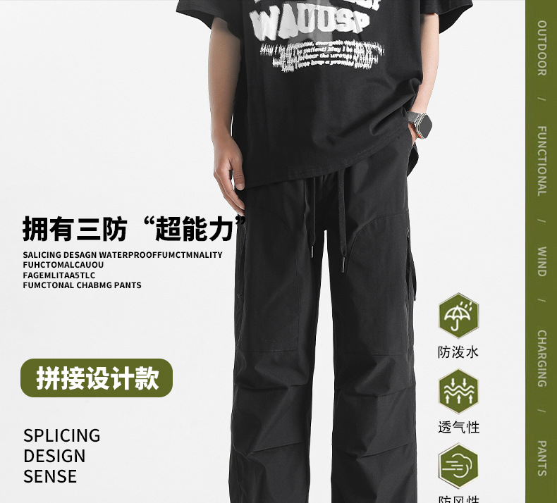여름 미국 기능성 작업복 남성과 여성을 위한 루즈한 스트레이트 하이킹 캐주얼 바지 야외 방풍 및 발수 충전 바지