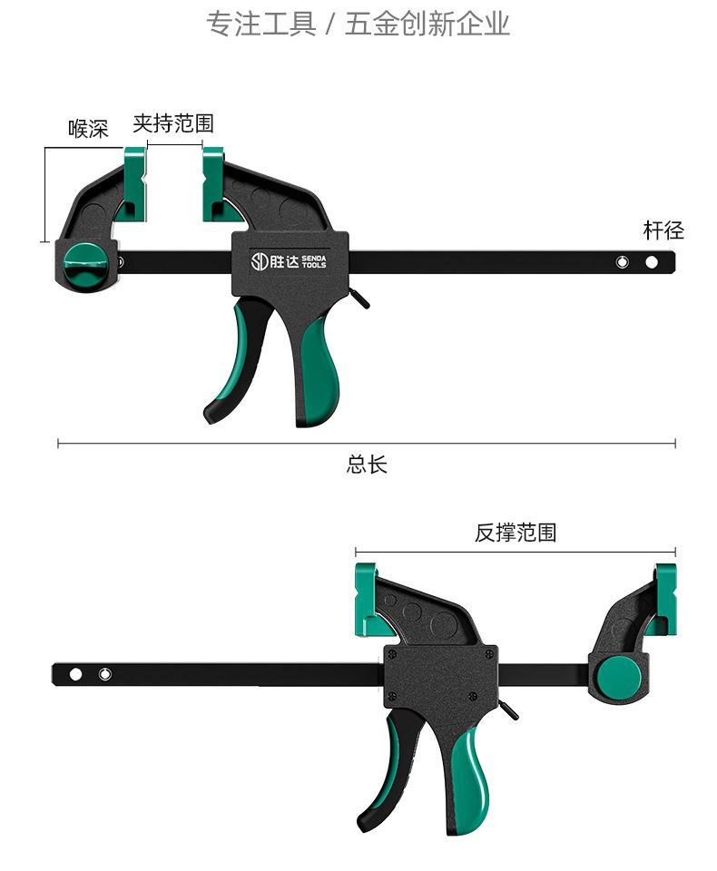 Shengda 목공 클램프 홀더 f 형 클램프 헤비 듀티 조정 가능한 강력한 나일론 목공 클램프 양방향 클램프스토어 가기