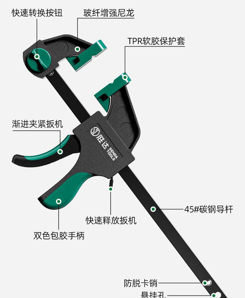 Shengda 목공 클램프 홀더 f 형 클램프 헤비 듀티 조정 가능한 강력한 나일론 목공 클램프 양방향 클램프