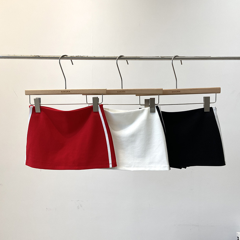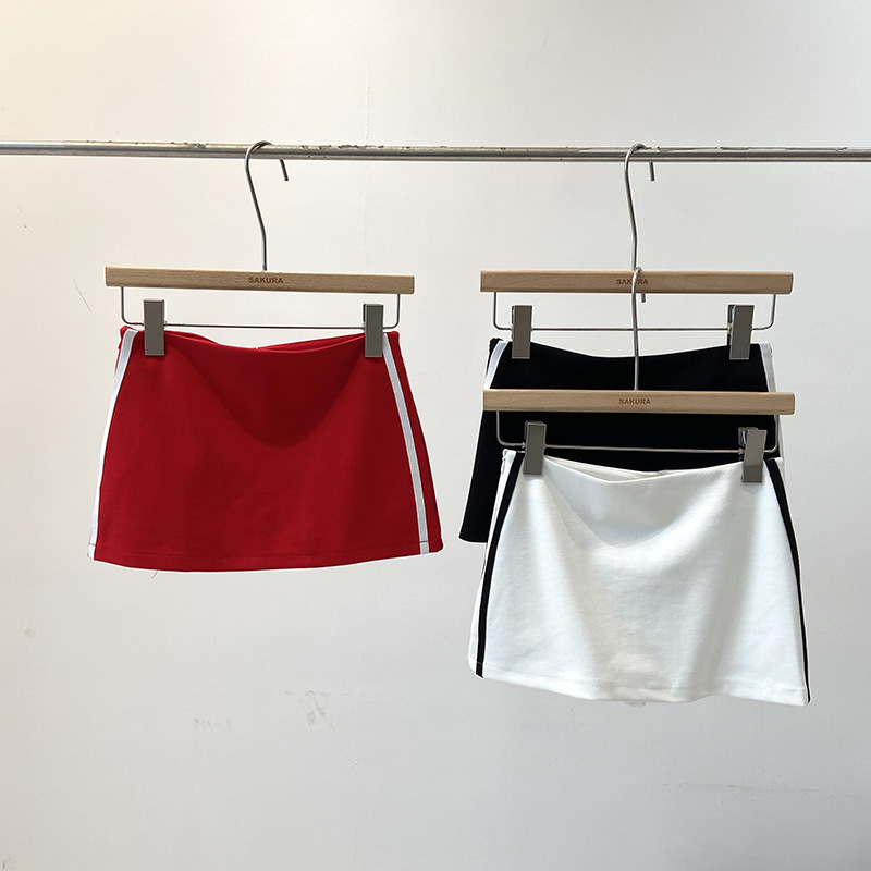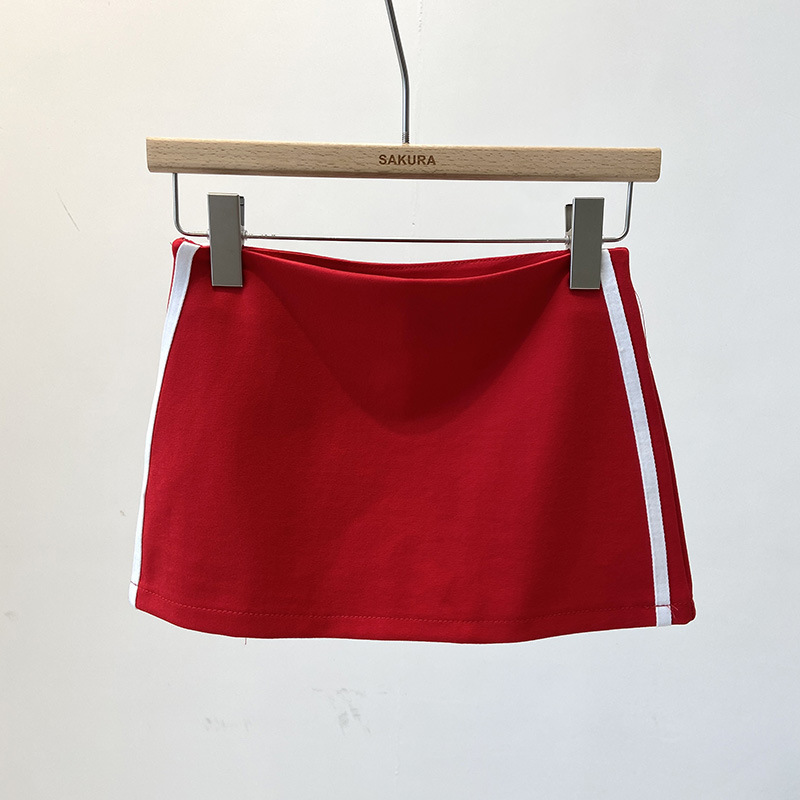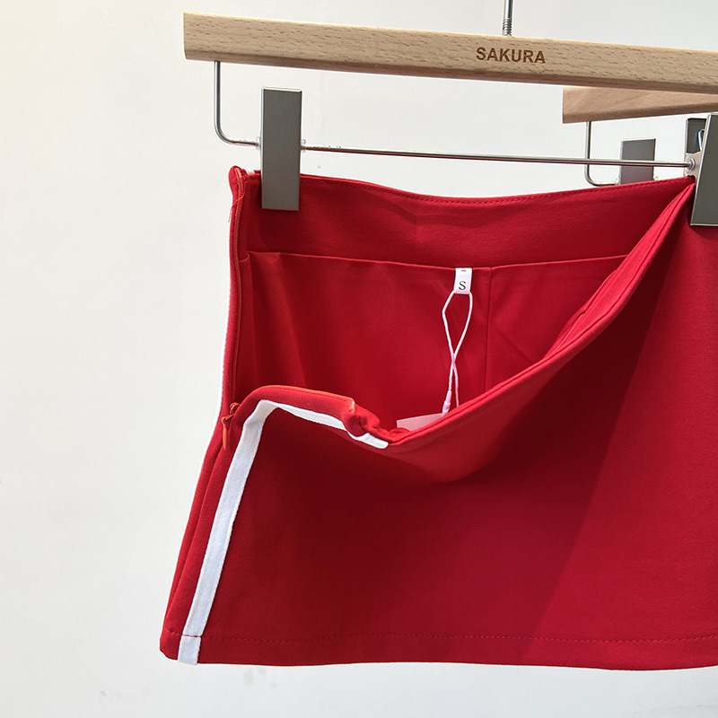 여름 한국식 여성용 미국식 달콤하고 매콤한 컬러 블록 평행봉 노출 방지 스커트, 작은 사람들을 위한 하이웨이스트 A라인 힙 스커트스토어 가기