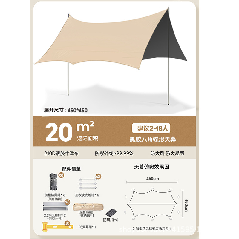 • 20m² 나비 팔각형 [완전 암막 비닐] 2~18인 권장