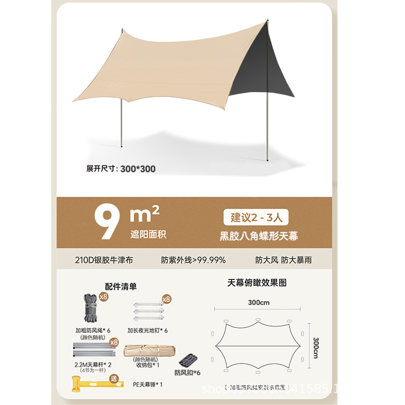 • 9m² 나비 팔각형 [완전 암막 비닐] 2~13인 권장