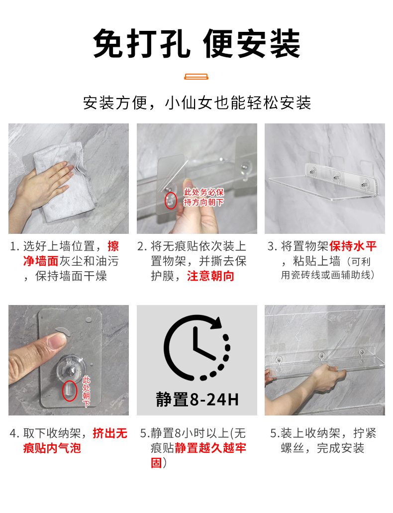 아크릴 수납선반, 벽걸이형 칸막이, 벽에 구멍을 뚫을 필요 없음, 주방, 욕실, 욕실 수납판, 시화이스토어 가기