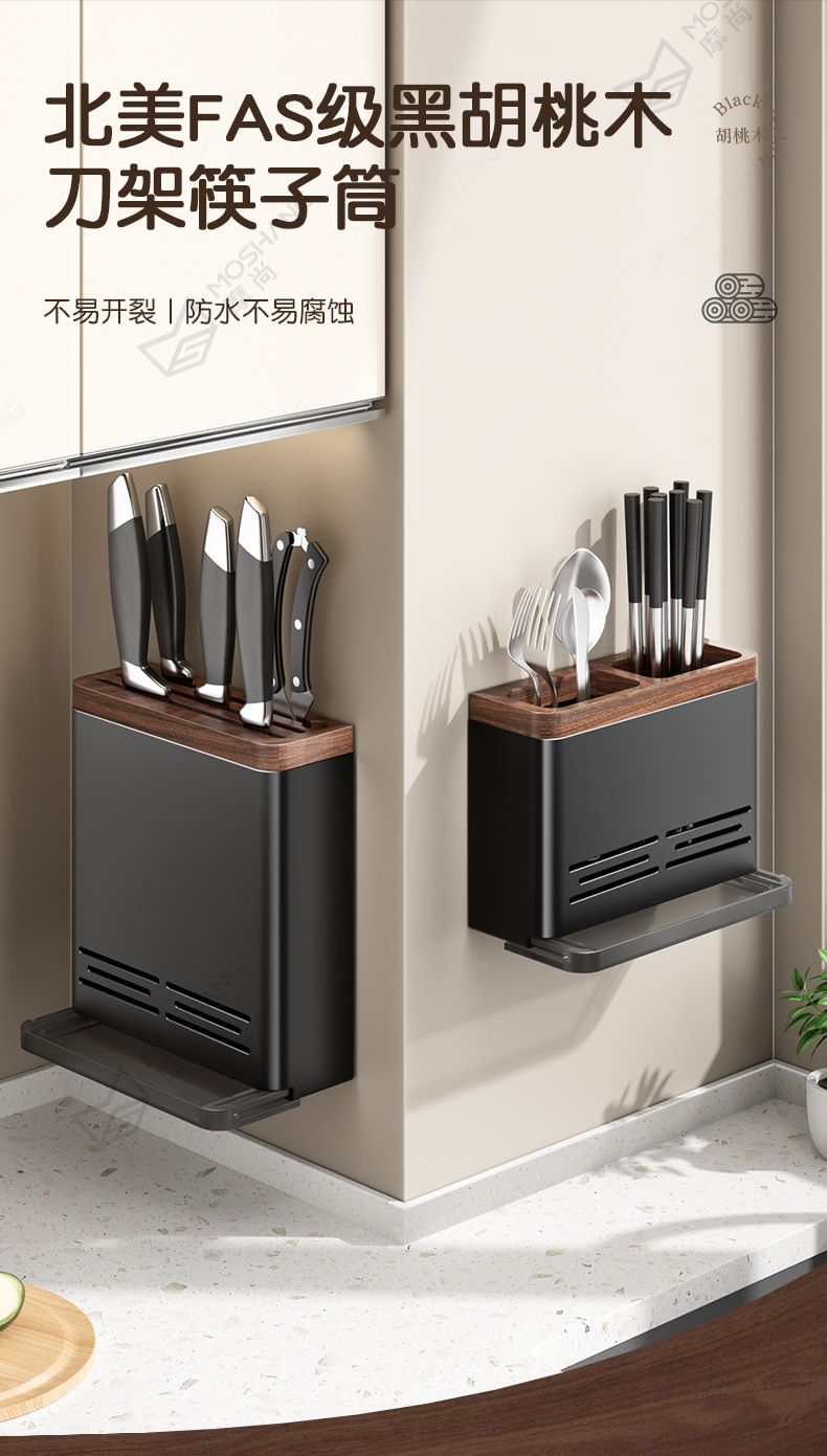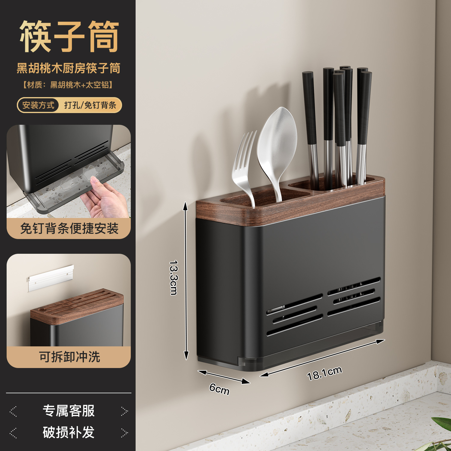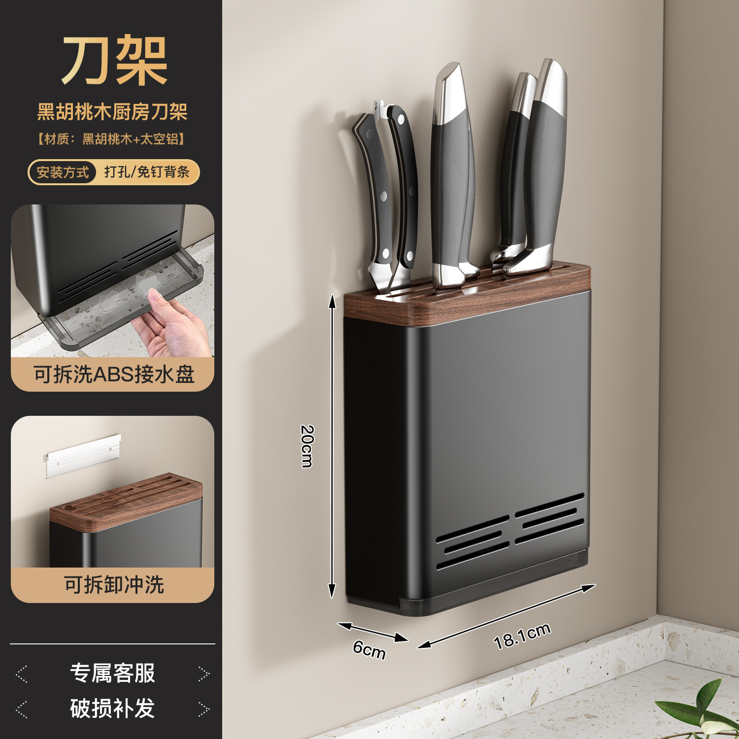 호두나무 칼걸이 주방 벽걸이 공간 알루미늄 칼걸이 젓가락통 일체형 다기능 칼수납선반