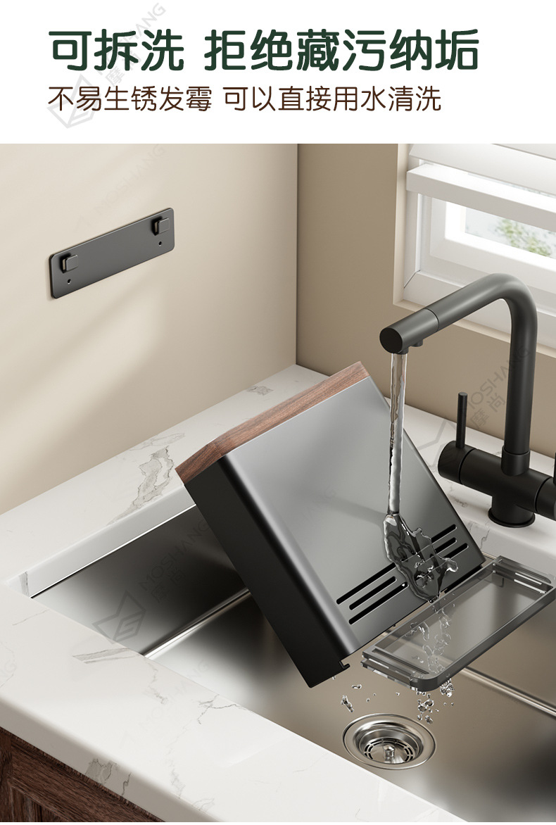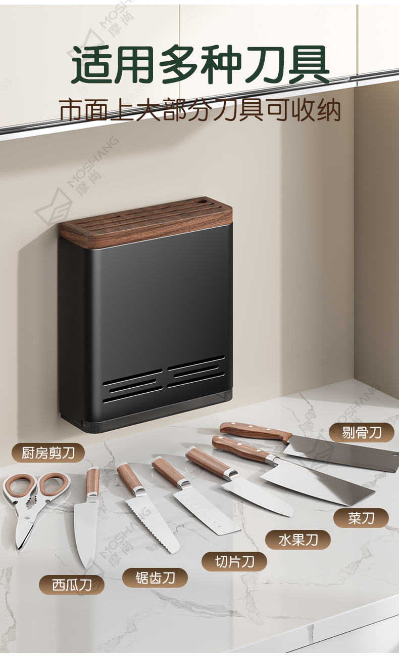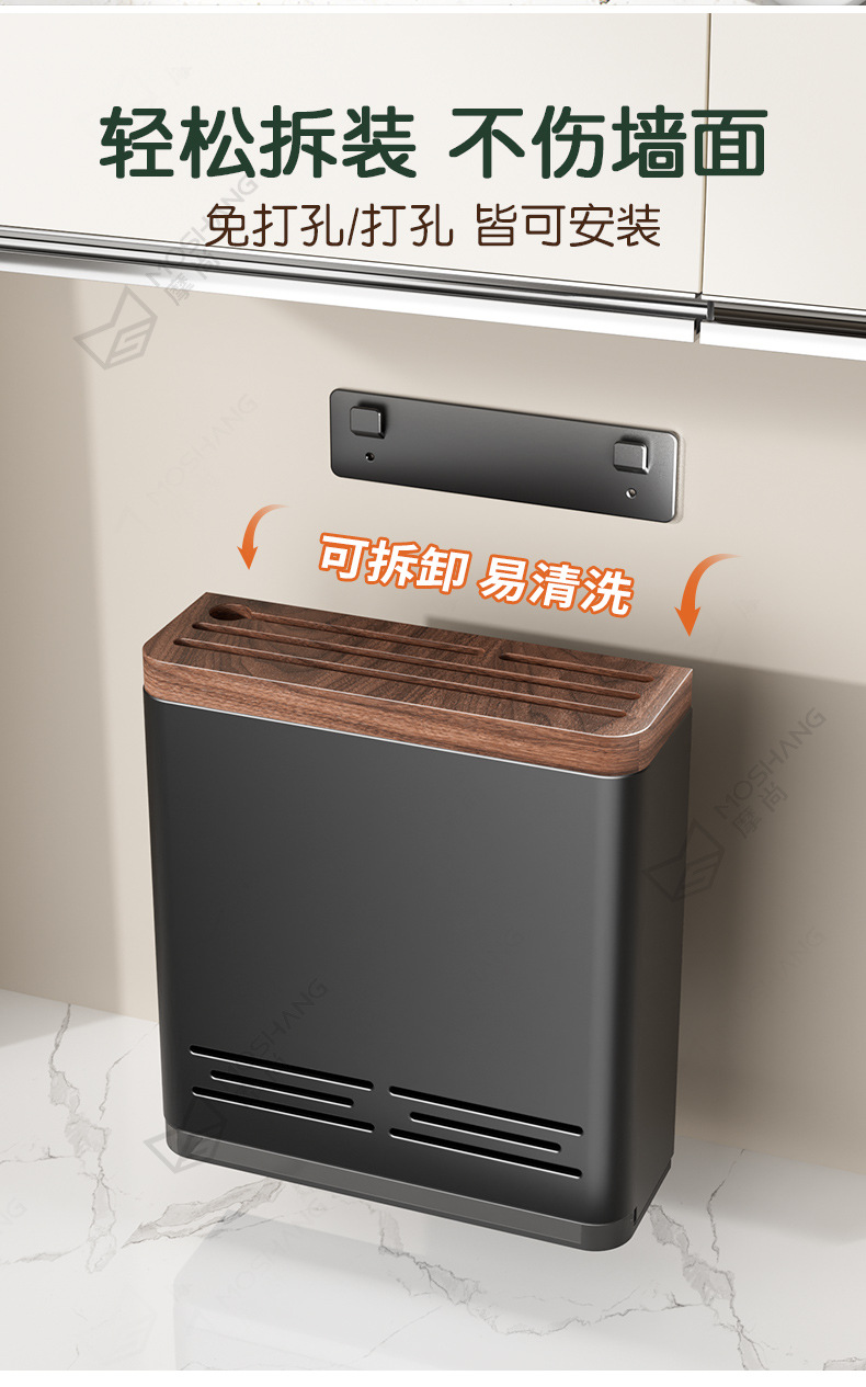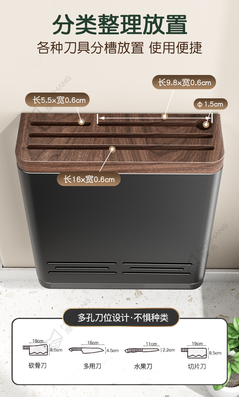 호두나무 칼걸이 주방 벽걸이 공간 알루미늄 칼걸이 젓가락통 일체형 다기능 칼수납선반