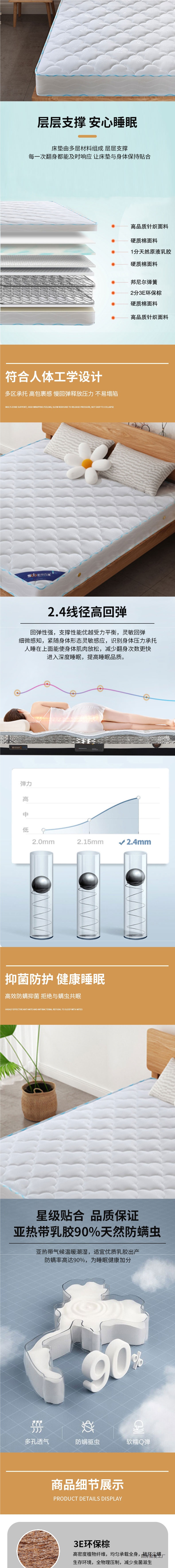 • 암호화된 스테인레스 스틸 스프링 + 태국 라텍스 + 3E 코코넛 야자 (부드러움과 단단함은 선택사항)