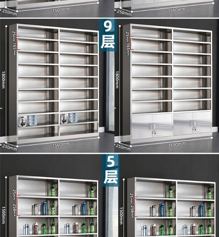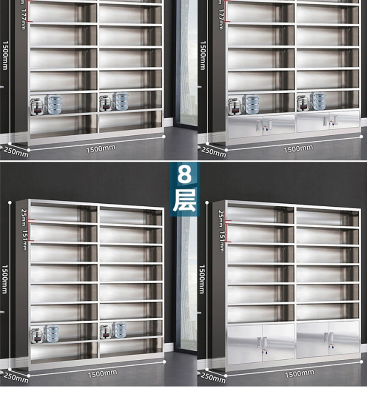 스테인레스 스틸 보관함, 구내식당 다층 식기장, 두꺼운 물컵 캐비닛, 디너 접시 캐비닛, 보관함, 작업장 선반 캐비닛스토어 가기