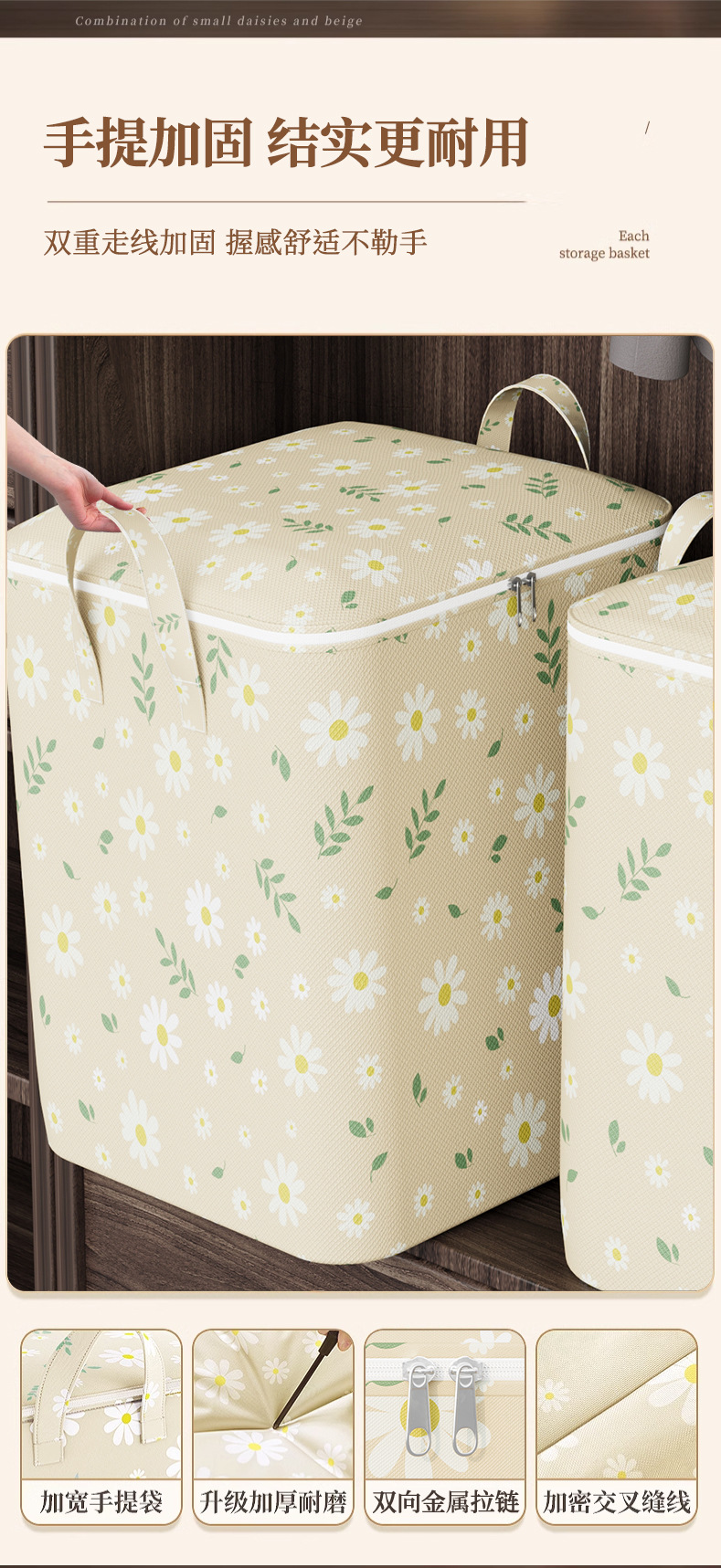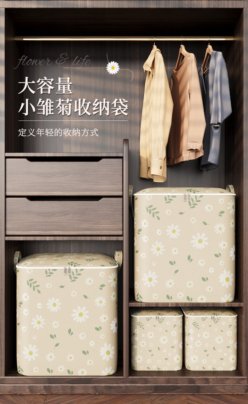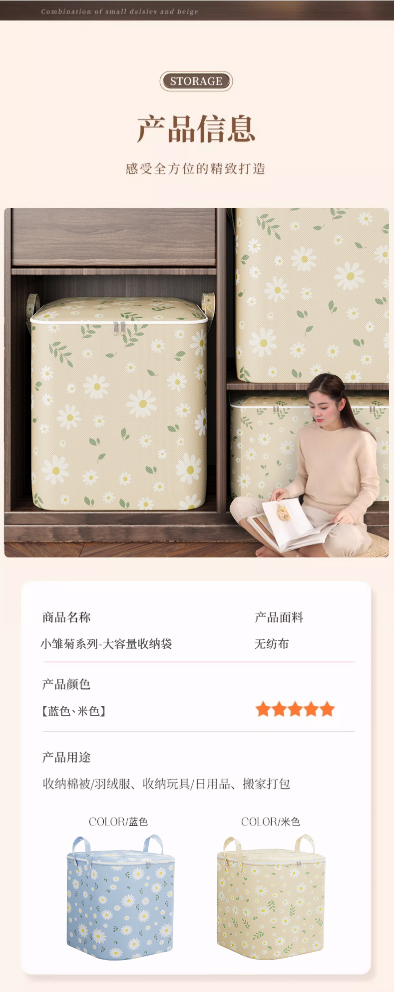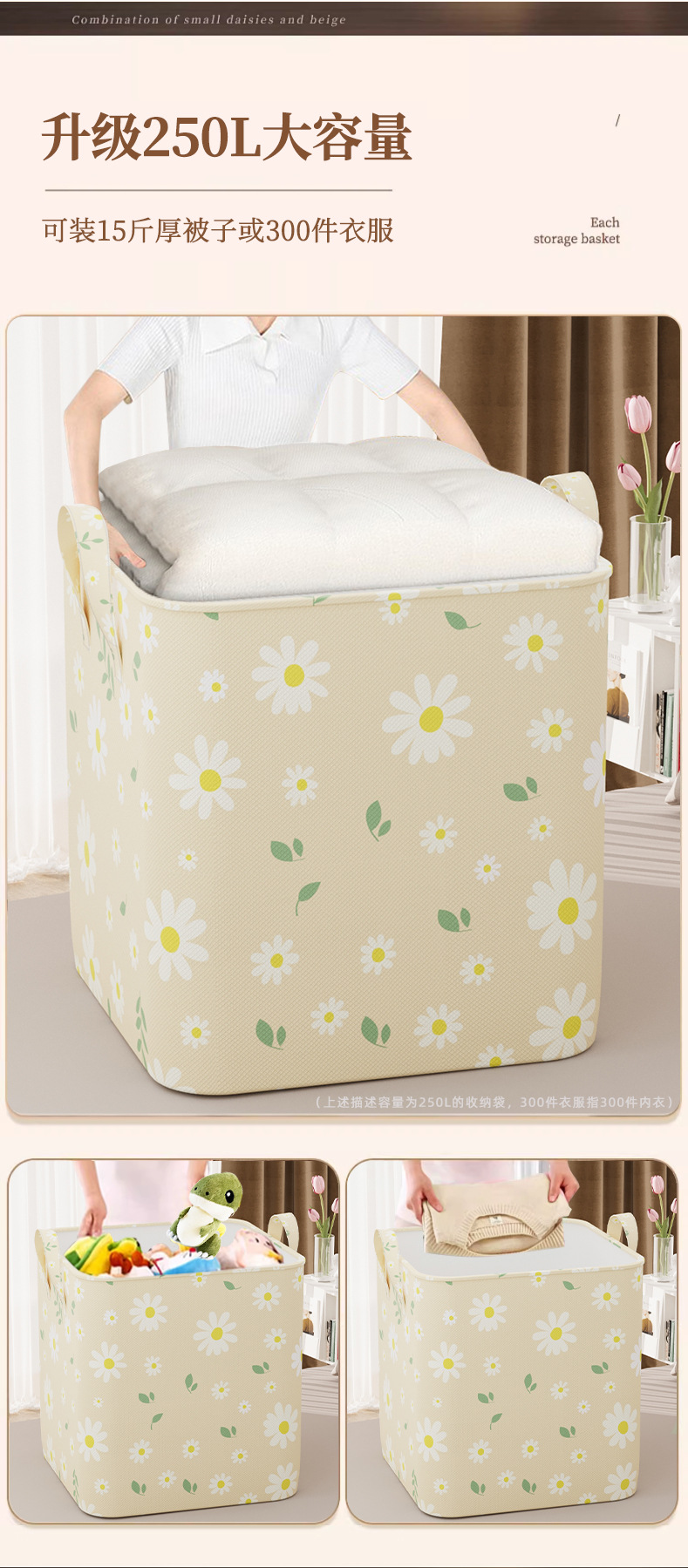 대용량 100L 작은 신선한 데이지 부직포 저장 가방 대용량 이불 옷 수하물 가방 휴대용 거인스토어 가기