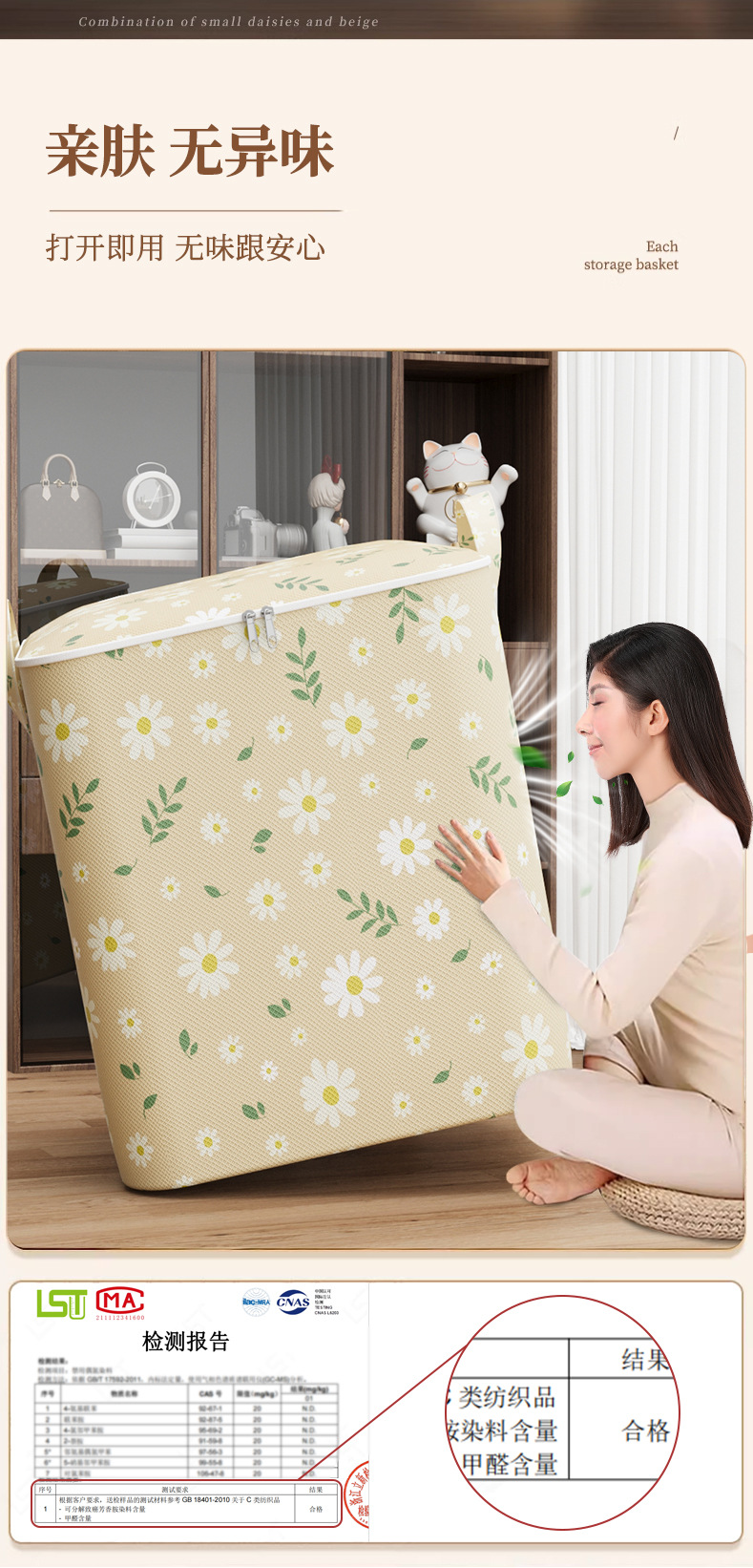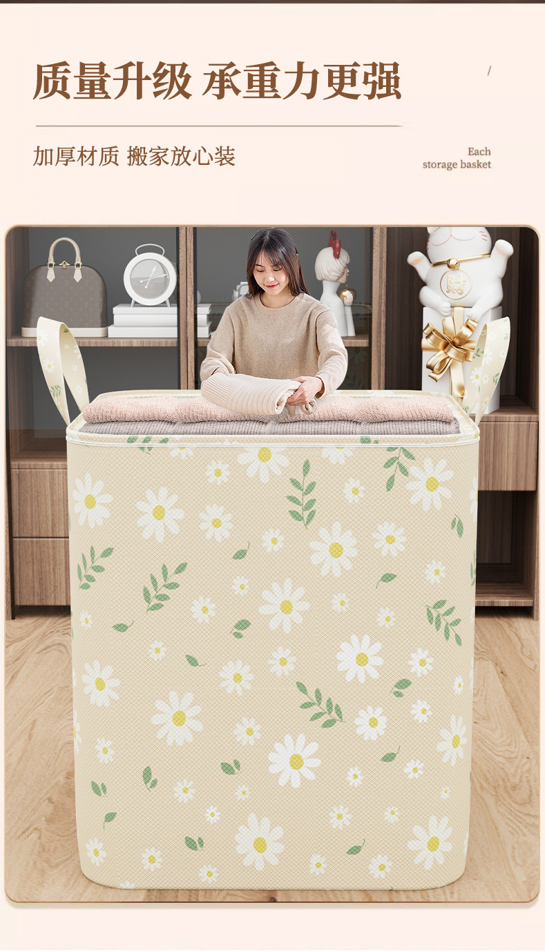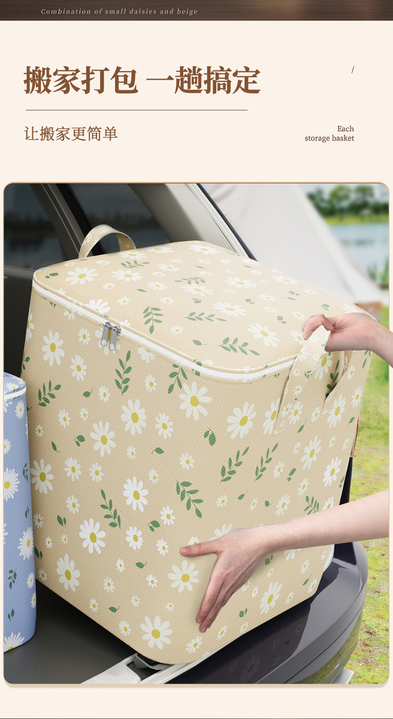 대용량 100L 작은 신선한 데이지 부직포 저장 가방 대용량 이불 옷 수하물 가방 휴대용 거인스토어 가기