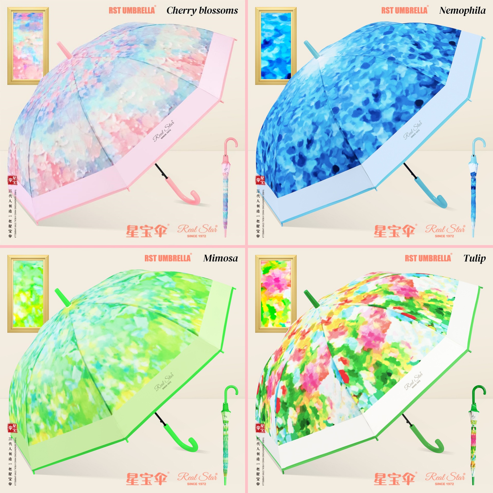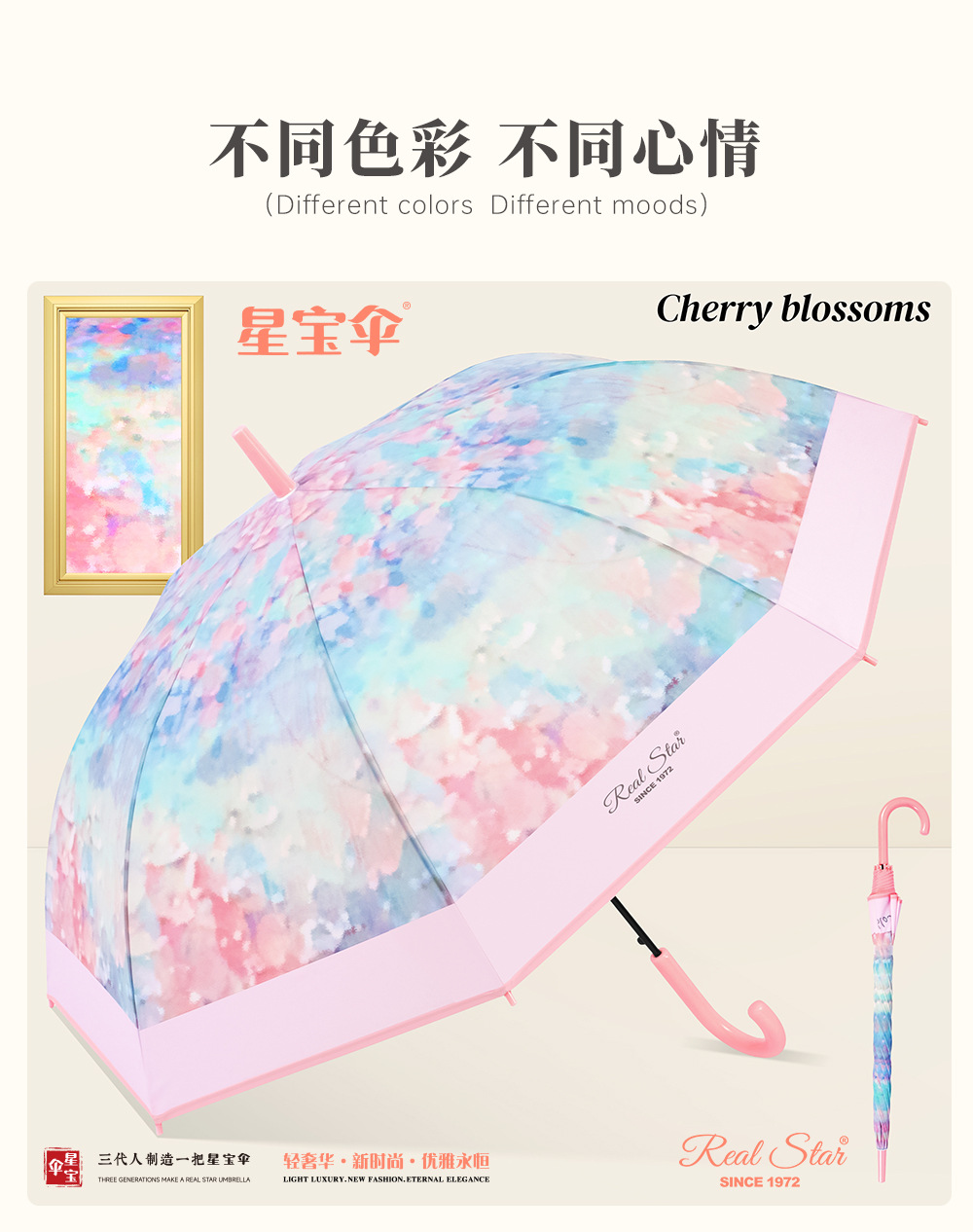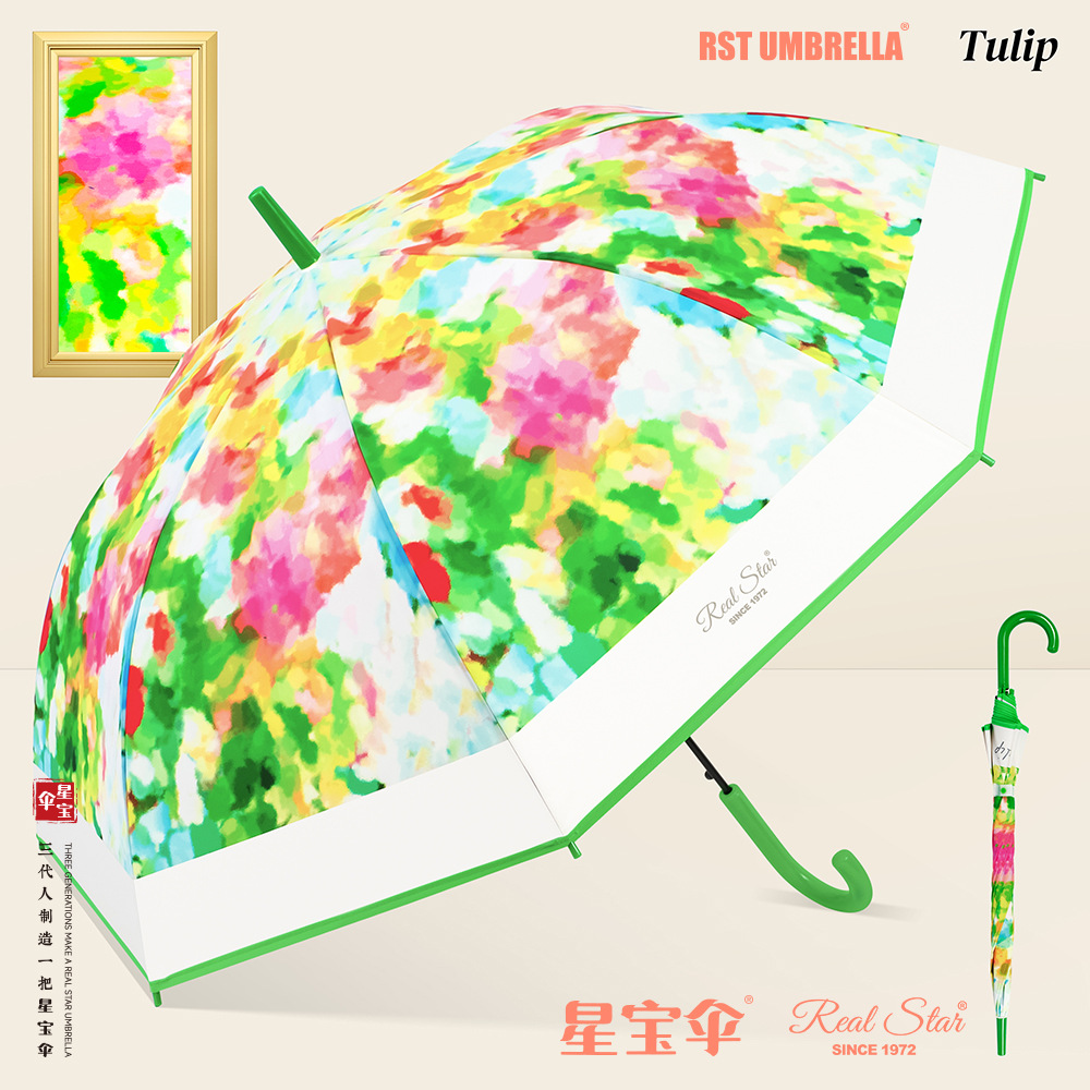 새로운 긴 손잡이 플라스틱 우산 디지털 인쇄 컬러 스트레이트 손잡이 플라스틱 우산 비 접이식 자동 열림 POE 우산 표면 EVA스토어 가기