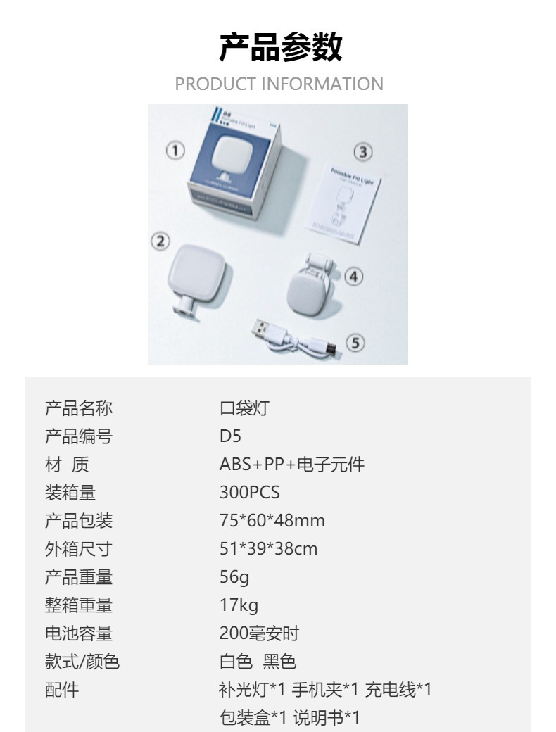 D5 휴대폰 보조광 클립 토프 라이트 미니 라이브 방송 셀카 조명 사진 촬영 포켓 라이트 삼색 온도 보조광
