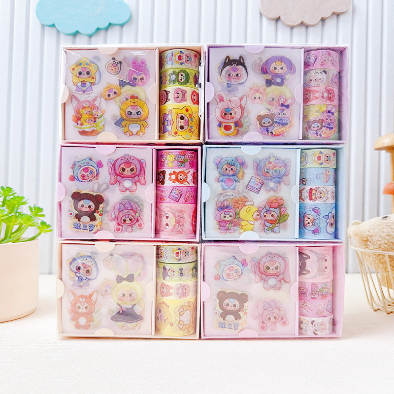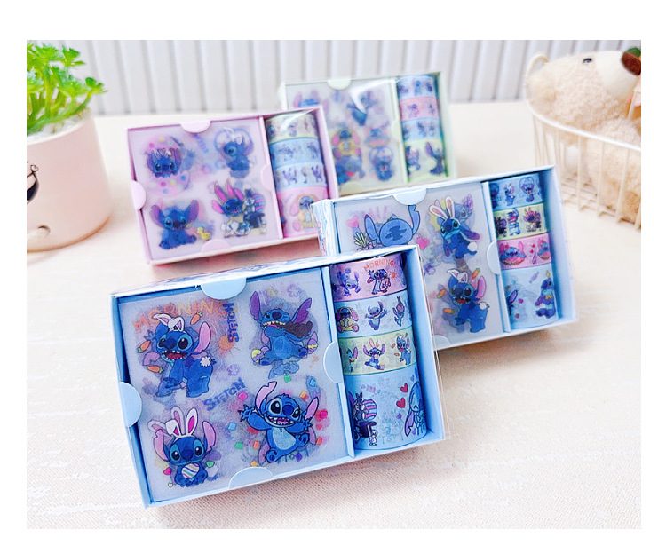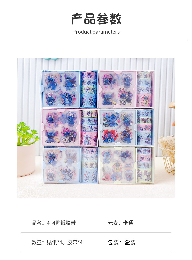 귀여운 4+4 스티커 테이프 조합 세트 스티치 릴로와 스티치 만화 스티커 아기 3세 핸드북 소재스토어 가기