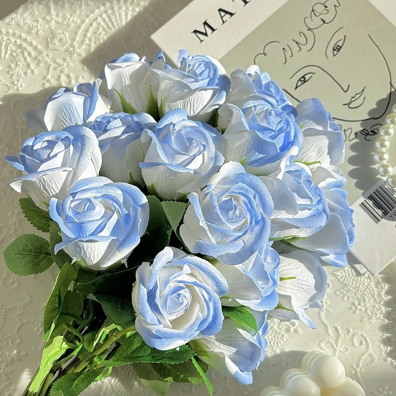 Ins 장미 시뮬레이션 꽃다발 장식품 꽃꽂이 사진 고가 DIY 선물 얼음 조각 거실 장식 무료 배송