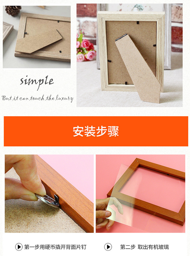 맞춤형 신중국풍 나무 액자, 다양한 크기의 탁상용 액자, 4K8KA3A4 벽걸이 액자, 로고 인쇄 가능스토어 가기