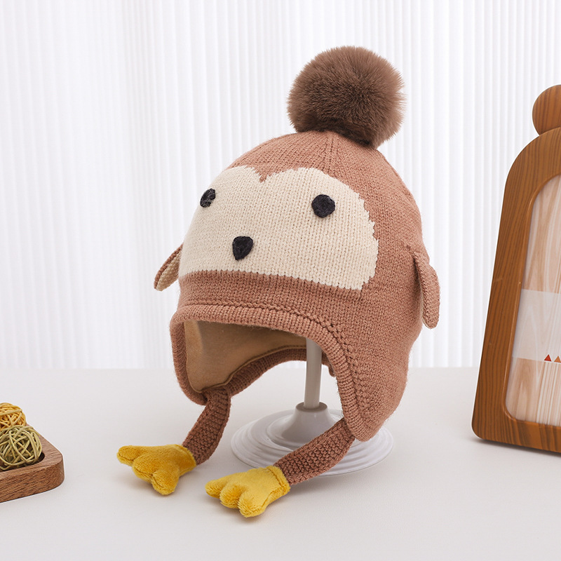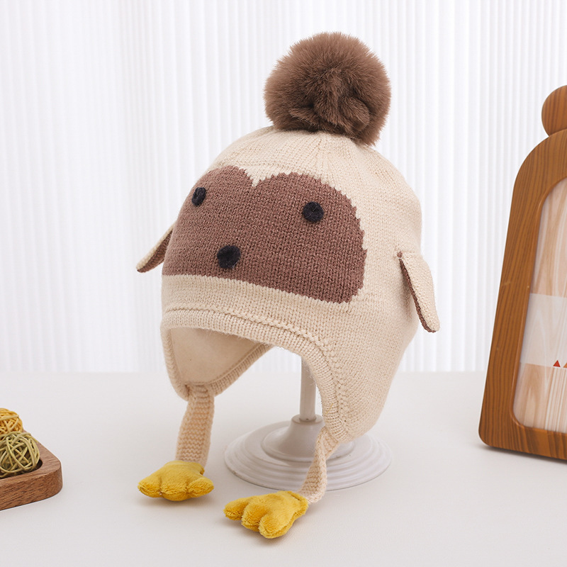 아기 모자 가을, 겨울 아기 소년 귀여운 모직 모자 유아 및 어린이 나들이 니트 모자 따뜻한 귀 보호 두꺼운 모자