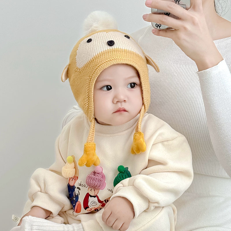 아기 모자 가을, 겨울 아기 소년 귀여운 모직 모자 유아 및 어린이 나들이 니트 모자 따뜻한 귀 보호 두꺼운 모자스토어 가기