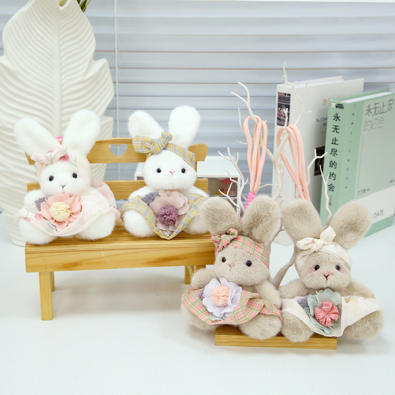 가격이 저렴한 토끼 인형 놀이용 장난감 농촌 스타일 작은 토끼 봉제 인형 키체인 장식품스토어 가기
