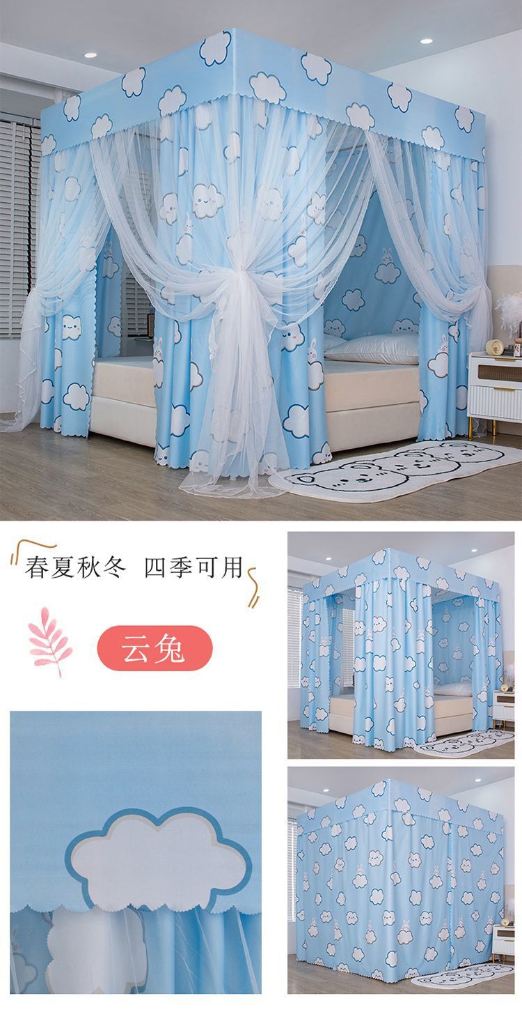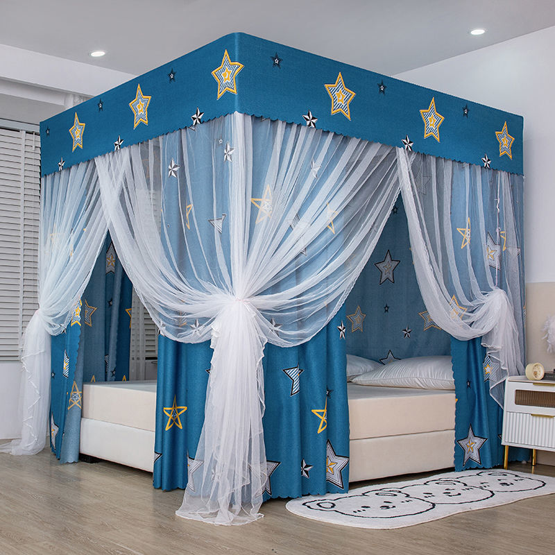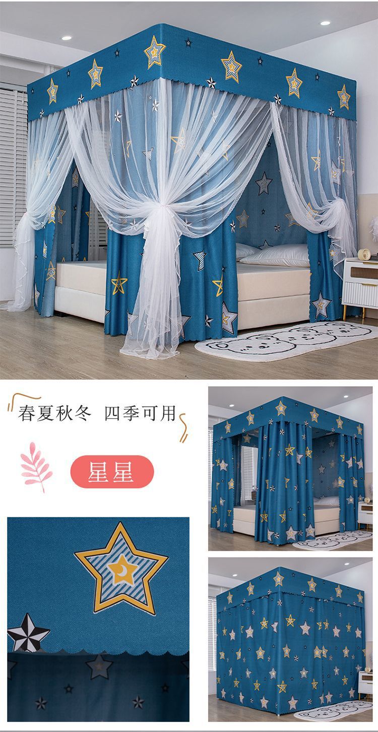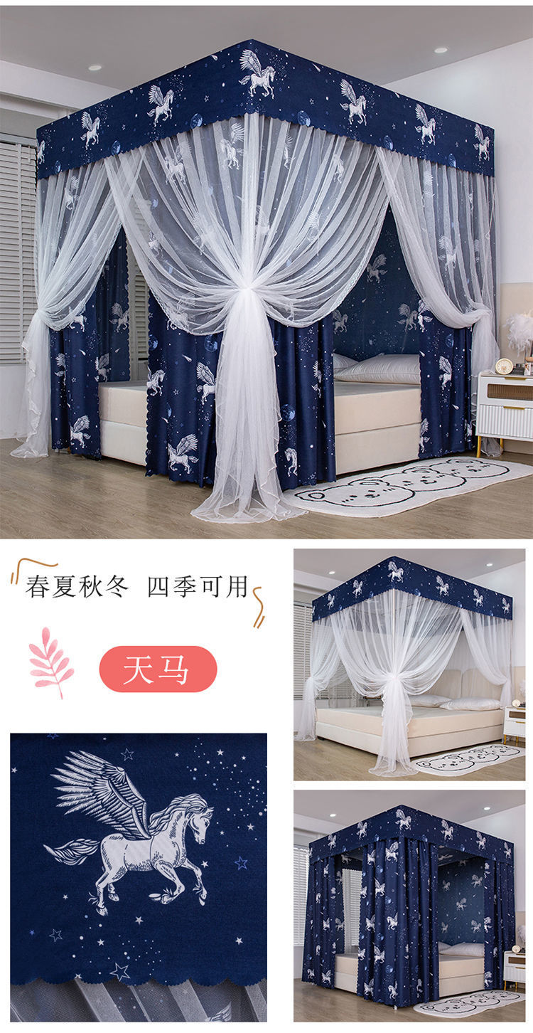 가정용 침실용 완전 밀폐형 침대 커튼, 차광 및 방풍 침대 커튼, 3도어 방진 천장 모기장, 싱글 및 더블 1.5m스토어 가기