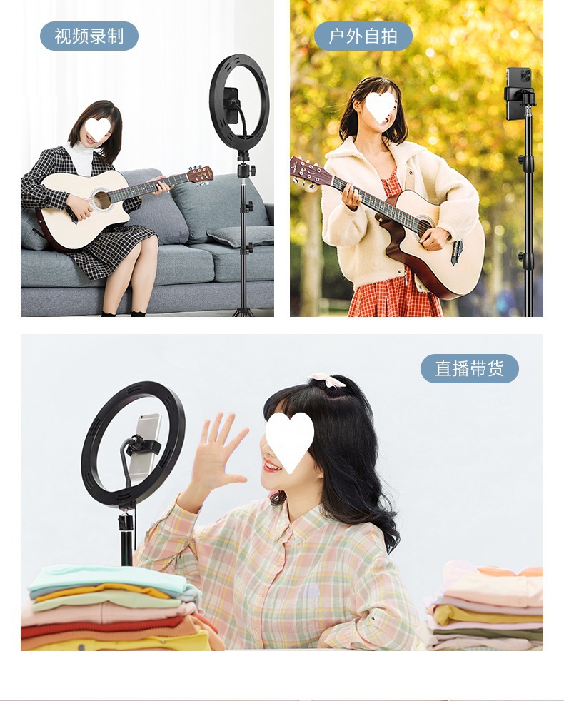 • 1.7m 휴대폰 홀더 + 26cm 링 라이트 [업그레이드 및 강화] 3개 카메라 위치 + Douyin 셀카 + 무료 보관 가방