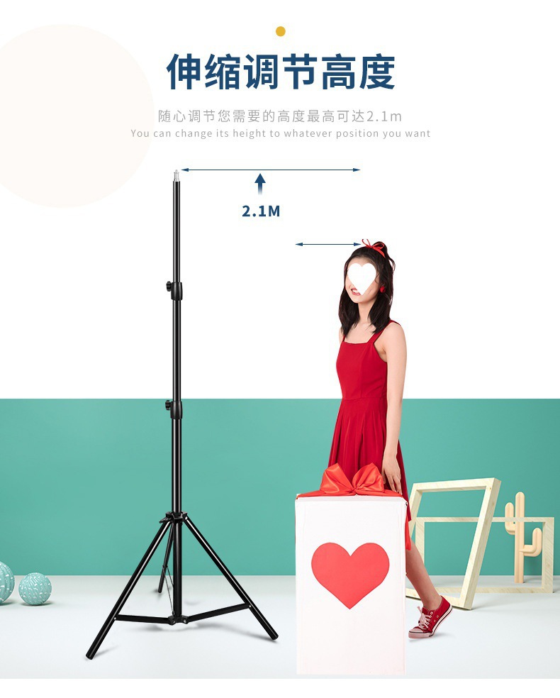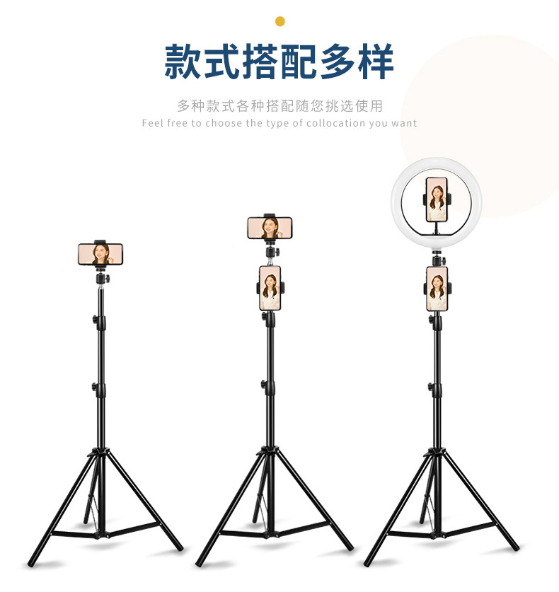 • 2.1m 휴대폰 홀더 + 26cm 링 라이트 [업그레이드 및 강화] 단일 카메라 + Douyin 셀카 + 무료 보관 가방